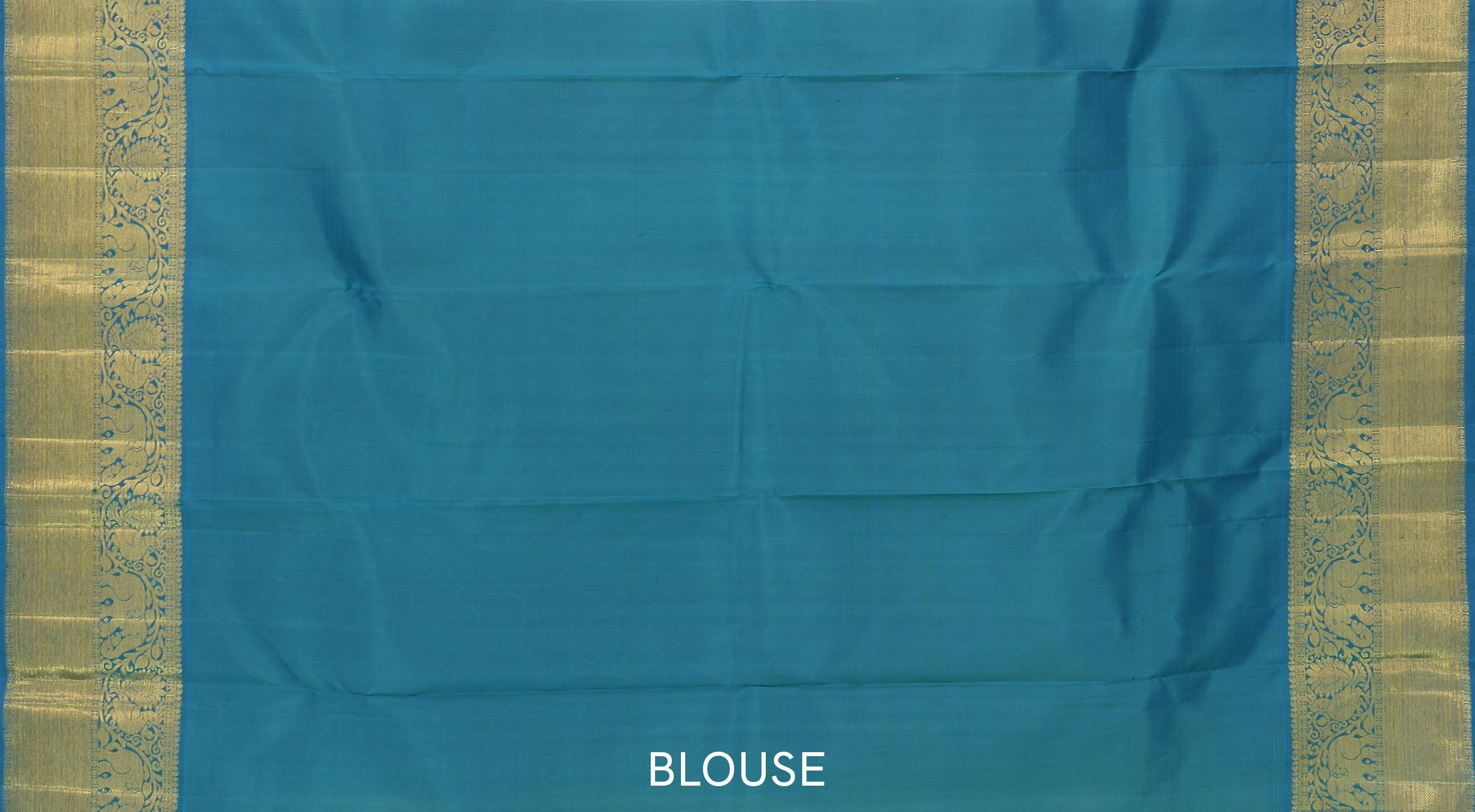 The blue pallu is a grand showcase of the Bavanshi tradition, woven with precision and care, making every fold a narrative of heritage and artistry. This saree is a tribute to the lighter, more ethereal side of Kancheevaram silk, perfect for daytime events or springtime celebrations, where its beauty can shine in the soft glow of natural light.