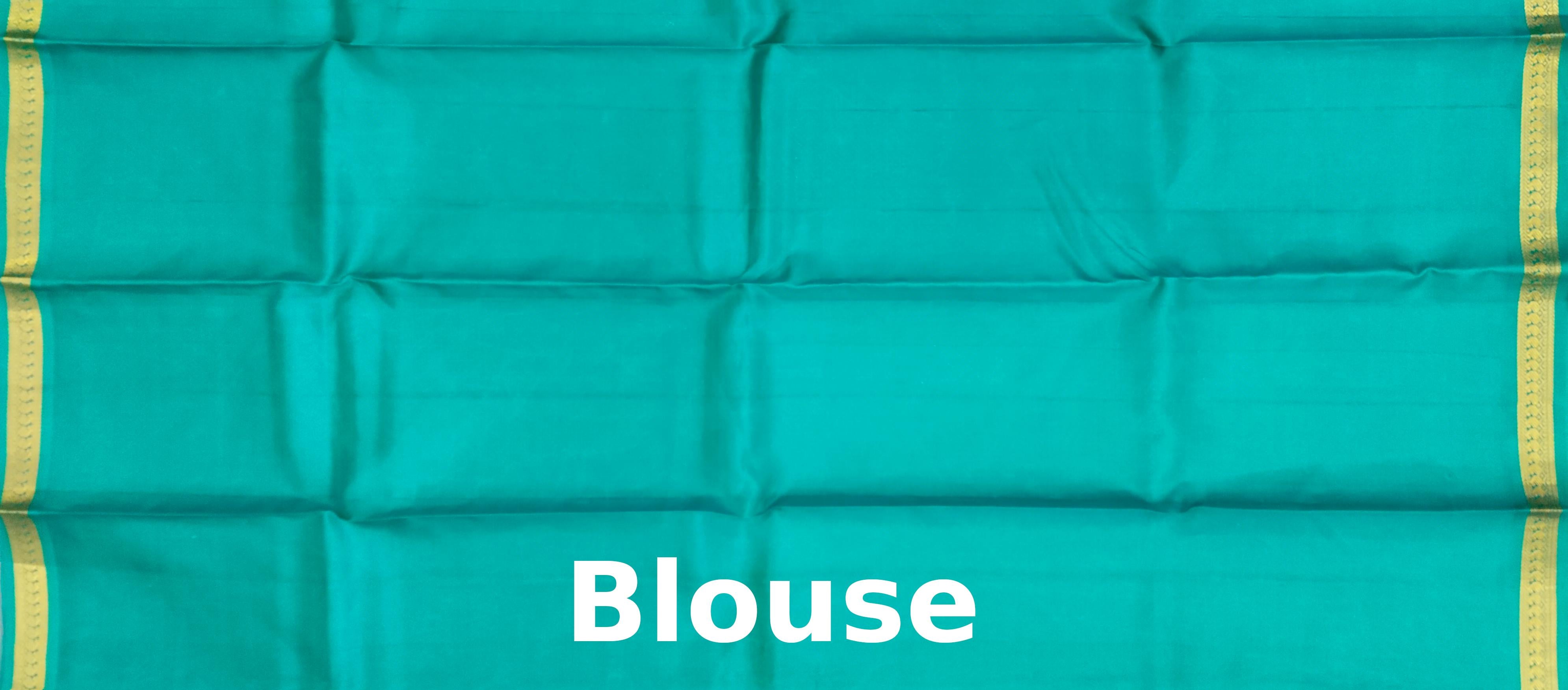 This enchanting saree, with its bluish-green border, pallu, and matching bluish-green blouse, is ideal for daytime events, intimate family gatherings, or a semi-formal occasion. Its unique color combination allows for versatile accessorizing. Pair it with delicate gold jewelry or contemporary silver pieces to enhance its understated elegance. Soft waves or a relaxed bun would beautifully complement its graceful drape, ensuring you exude effortless charm and refined taste.