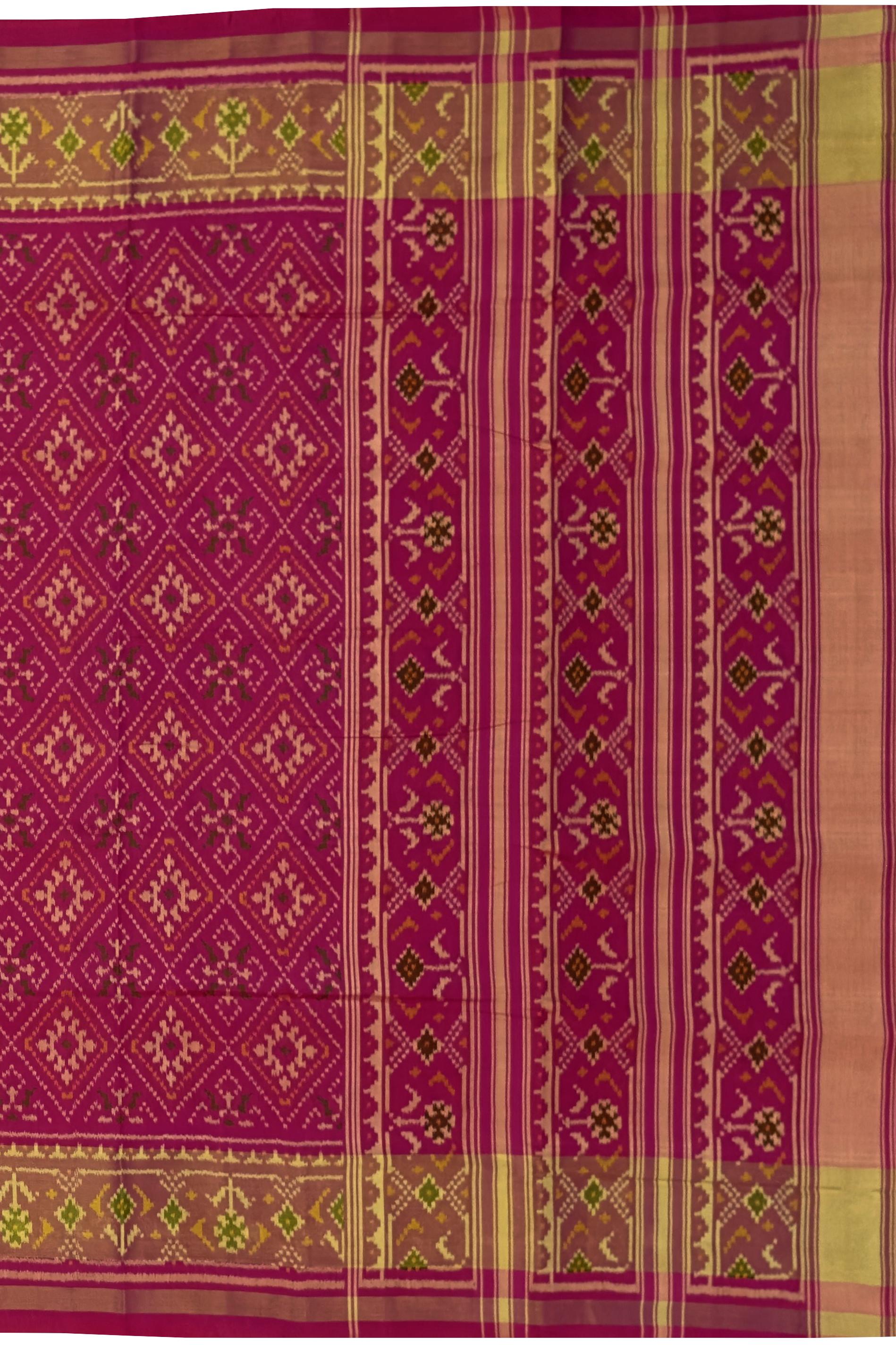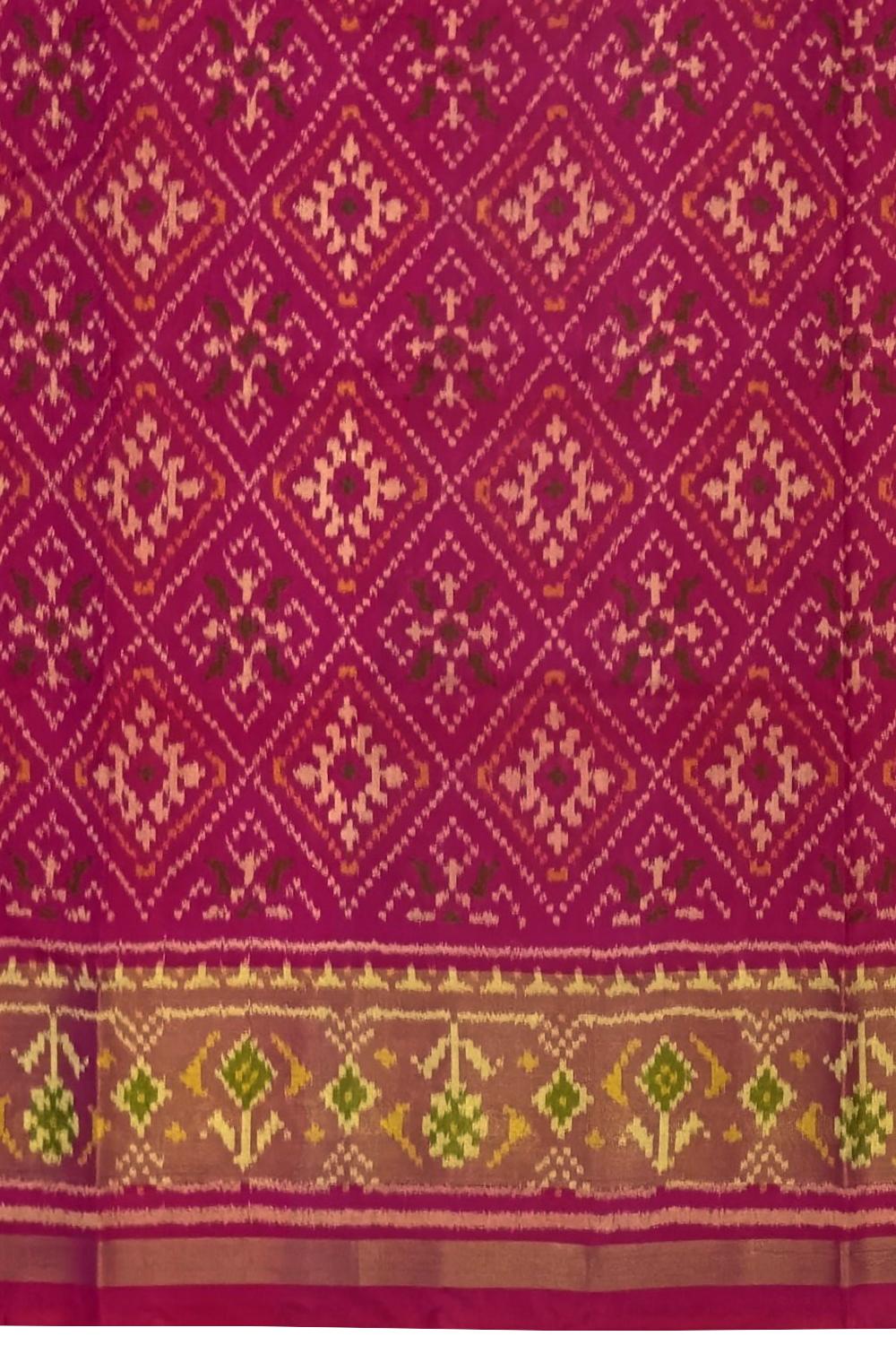 This stunning Pink Red Single Ikat Rajkot Patola Saree is a gorgeous and elegant piece. The saree features a beautiful Chanda Bhat design, intricately woven in Pink and Red hues.