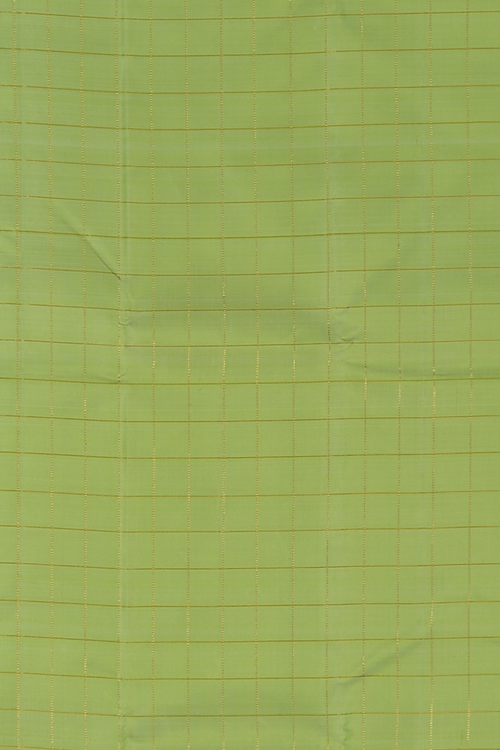 The body, resplendent in pista green, showcases a checkerboard design. Medium checks, each an element of symmetry and balance, paint a story of traditions and the rhythmic dance of nature.