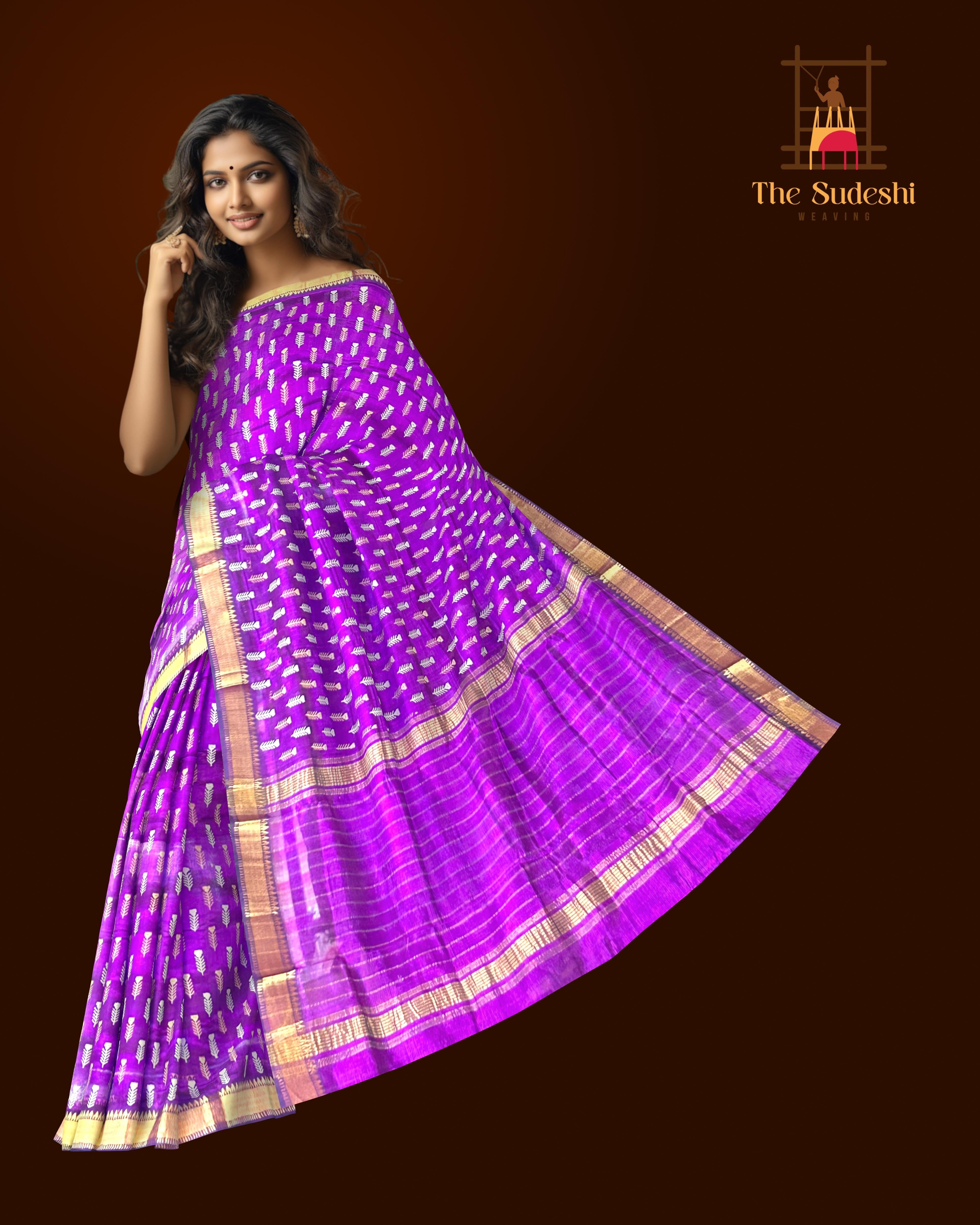 All our sarees are handwoven and made from pure silk, unless stated otherwise. However, since our weavers are traditional artisans, they may not always have official Handloom or Silk Mark certifications for their work.