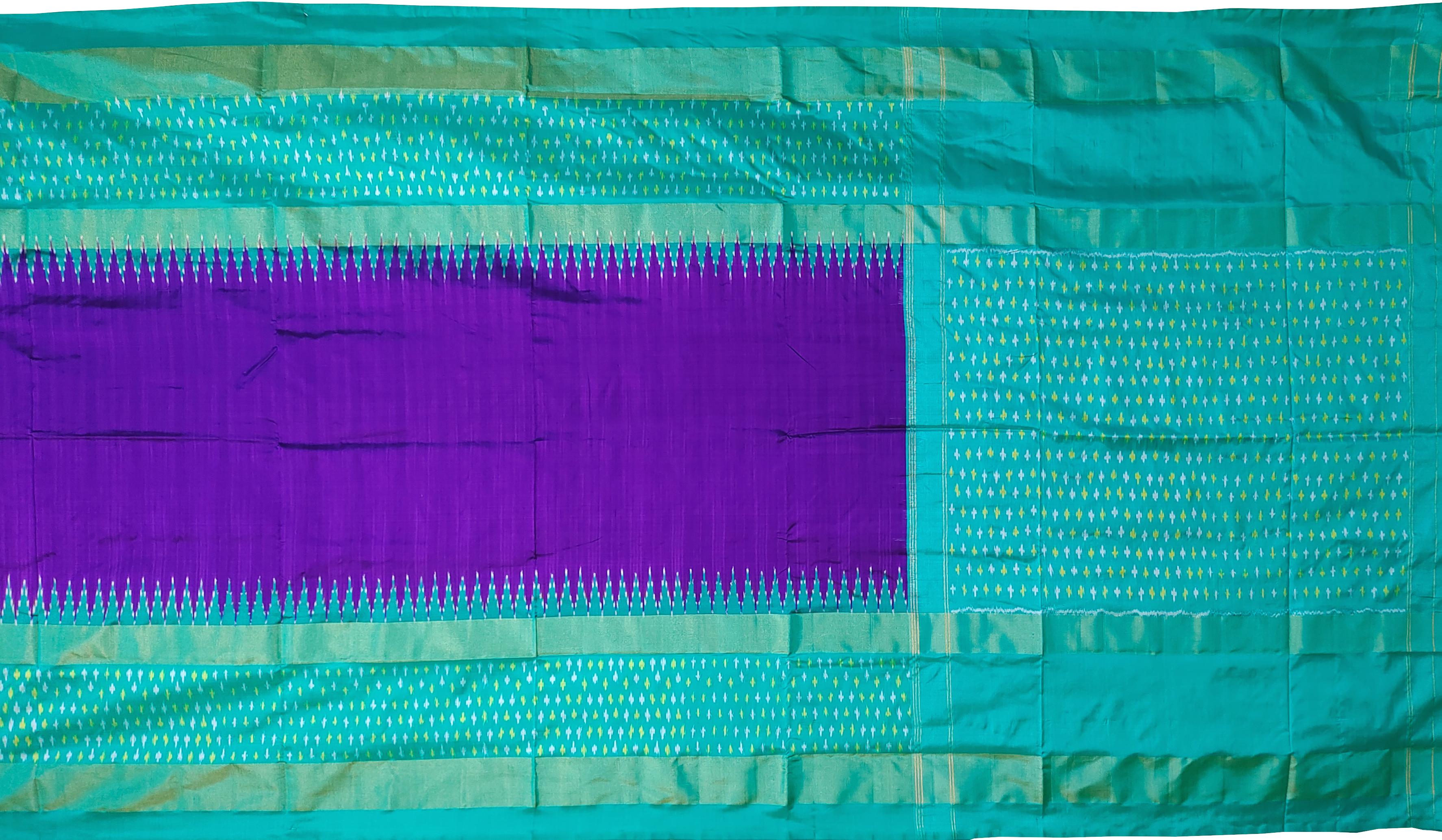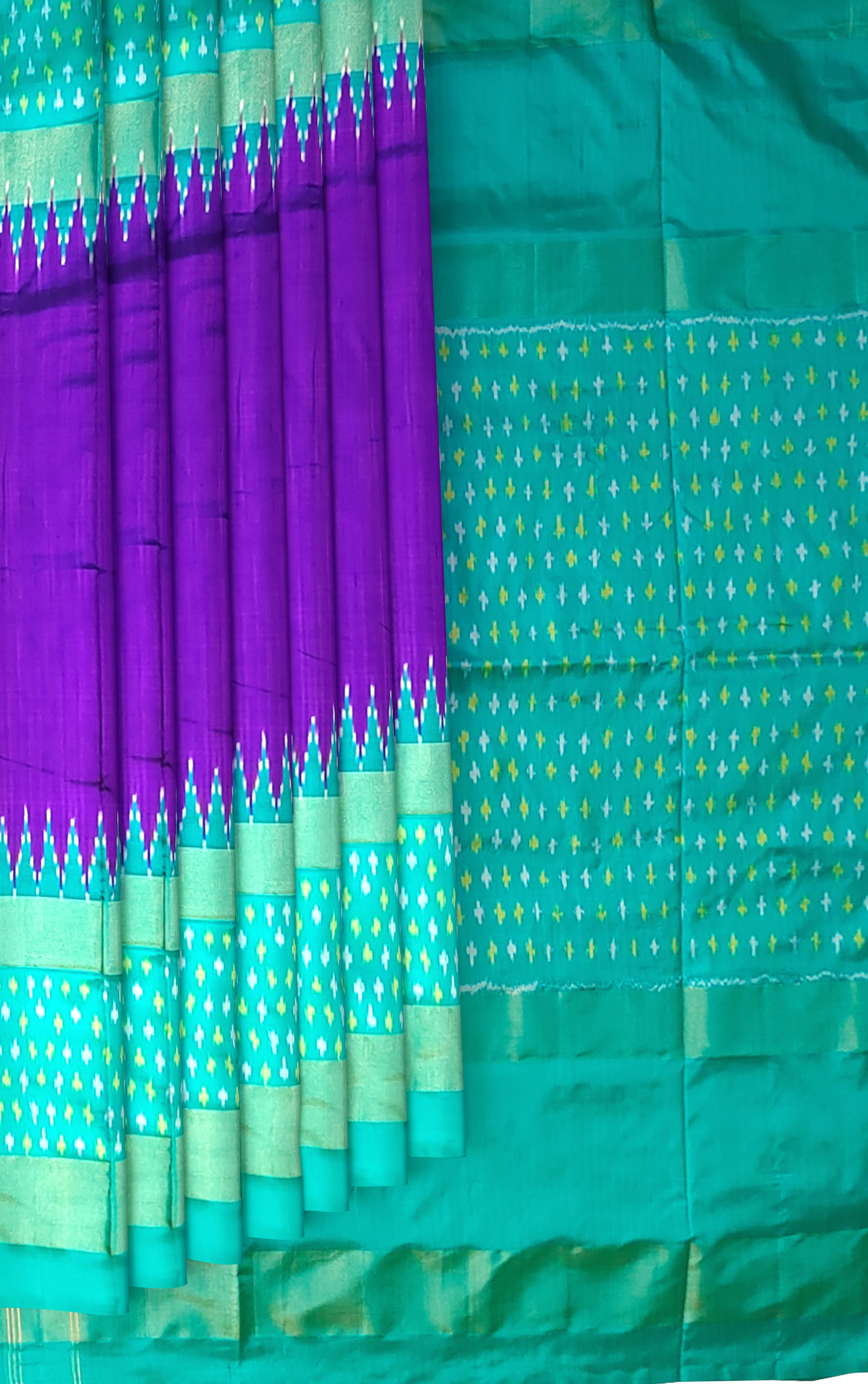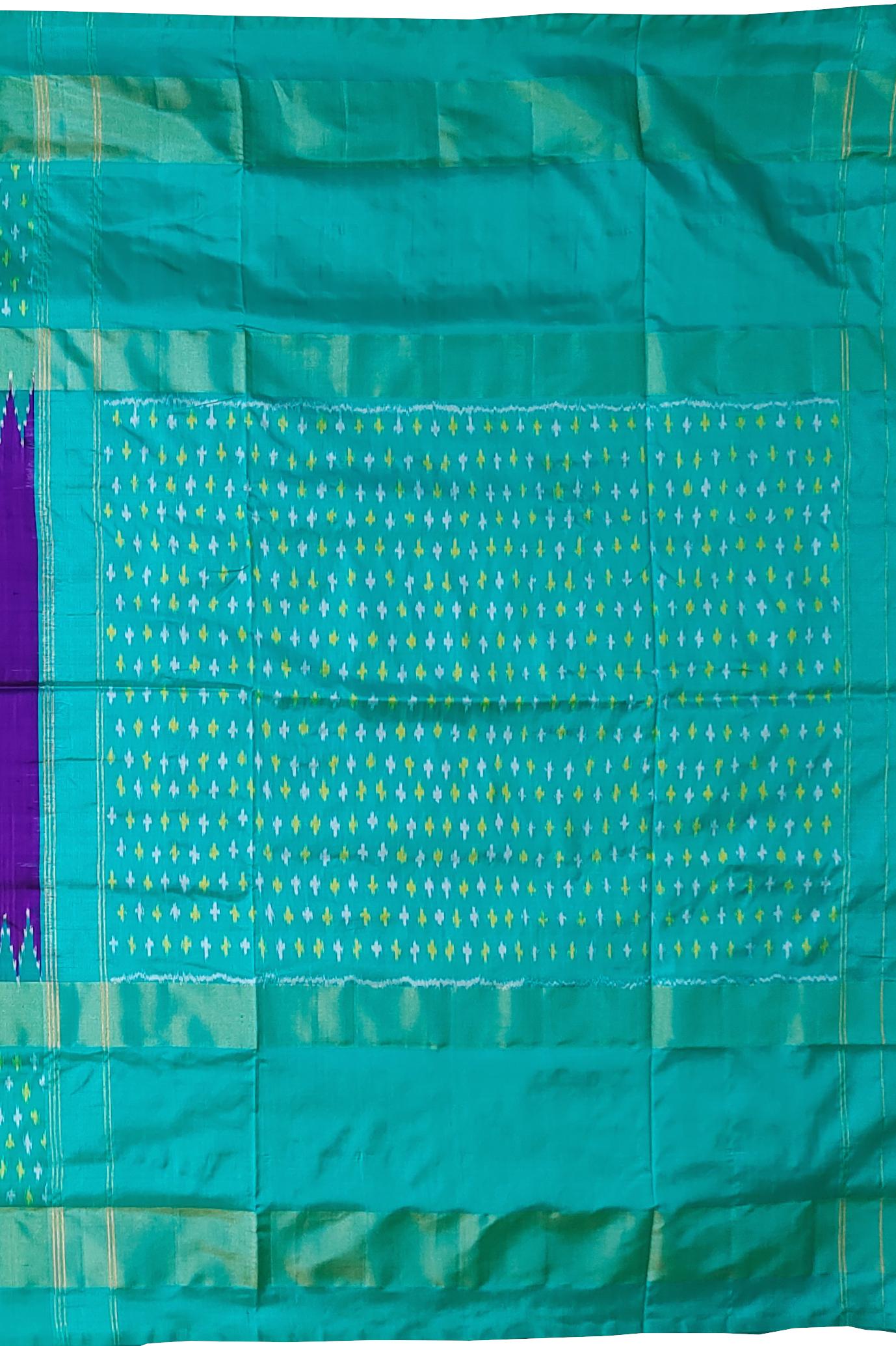 This gorgeous Purple Green Pochampally Single Ikat Handloom Saree is a vibrant and stunning piece that showcases the beauty of traditional Indian craftsmanship. The saree features intricate gold zari work on a purple and green background, creating a striking contrast that exudes elegance and sophistication.