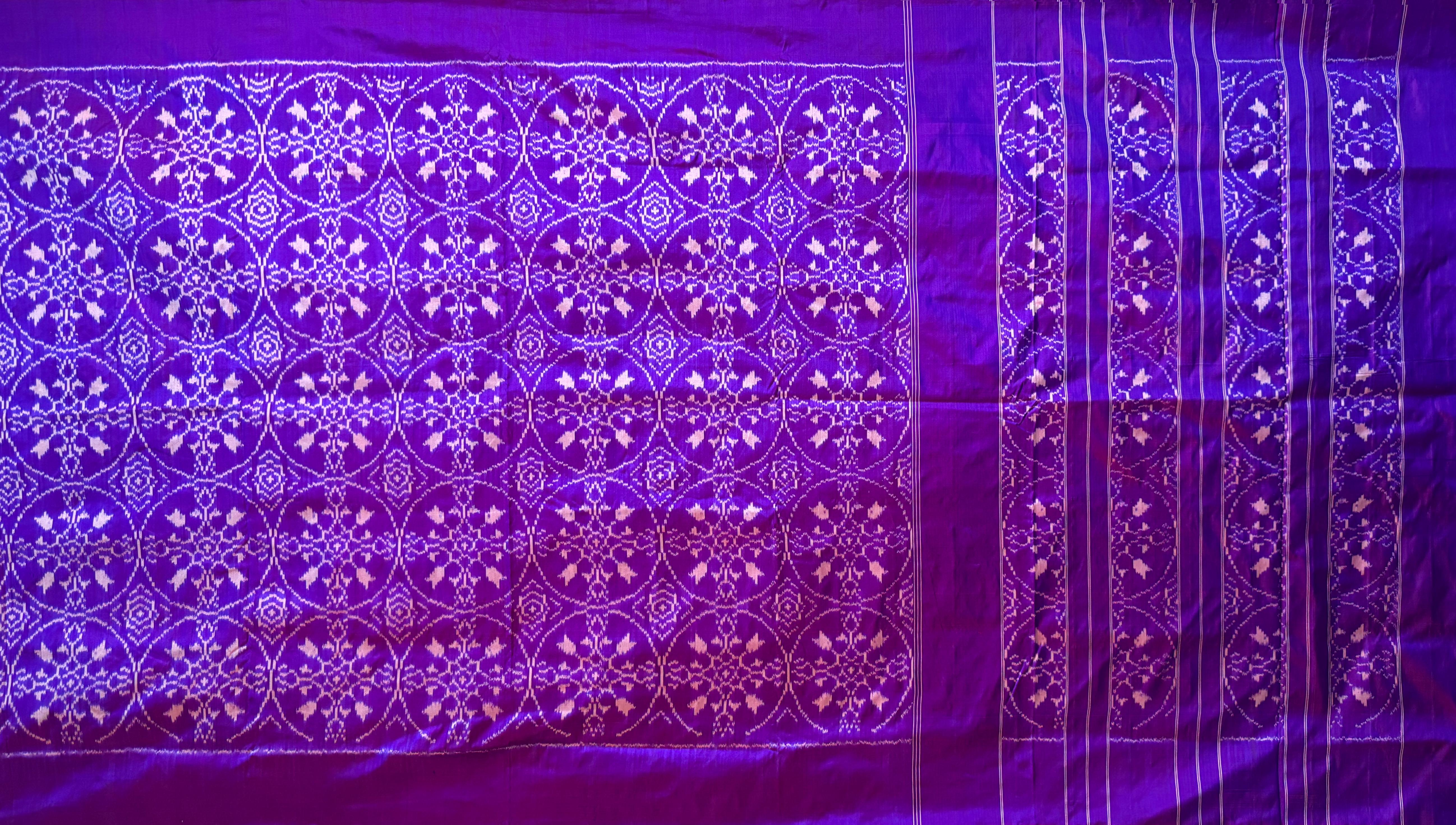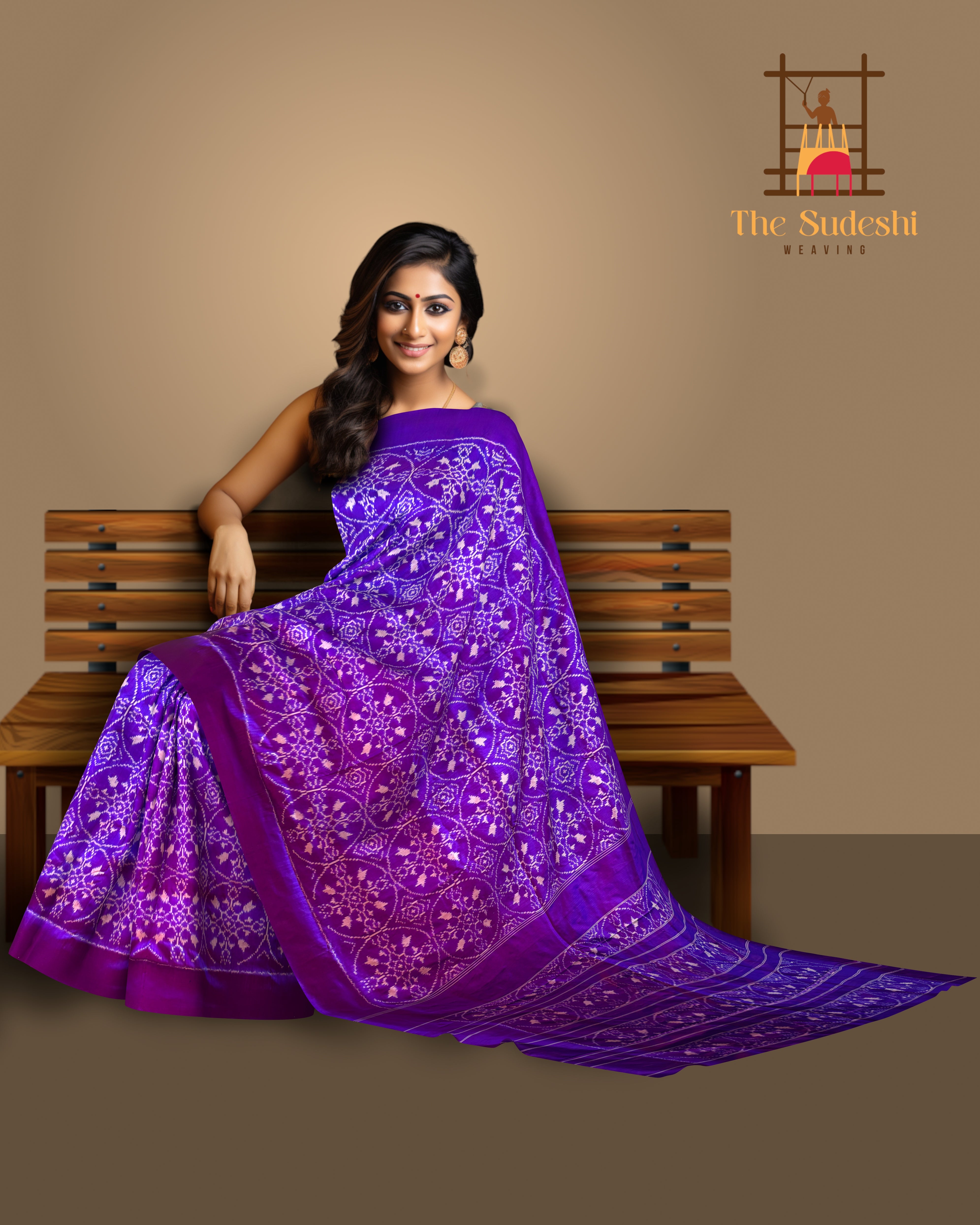 Radiating royal grace, this Purple Pochampally Ikat Saree features a rich purple body harmonized with a matching border and pallu. The deep shade of purple paired with the intricate ikat patterns makes this saree a timeless classic, perfect for occasions where elegance takes center stage. Hailing from the famous handlooms of Pochampally, Telangana, the saree is crafted using the complex double ikat weaving technique. The pre-dyed threads form motifs that are steeped in tradition, representing prosperity, creativity, and cultural heritage. The choice of purple signifies nobility, dignity, and wisdom. Ideal for receptions, formal parties, and festive celebrations, this saree pairs wonderfully with a gold or contrasting silver blouse. Accessorize with temple jewelry or kundan sets to enhance its regal beauty. Note: The appearance of the product’s colors may vary due to lighting conditions or your device’s screen calibration. For further assistance or additional images/videos, feel free to contact us at +91 97897 60367 / +1 (945) 308-5962 or email at wecare@thesudeshiweaving.com.
