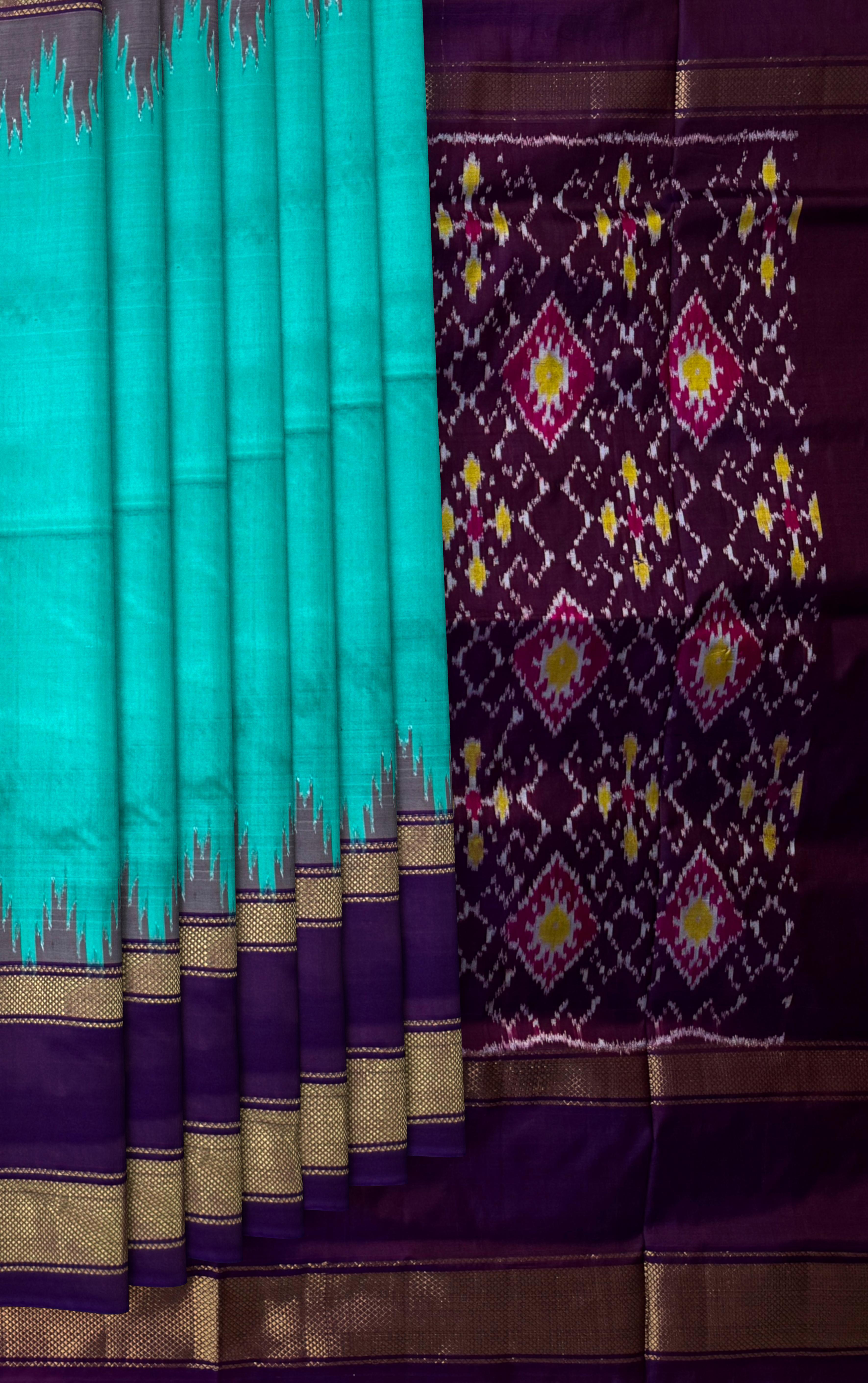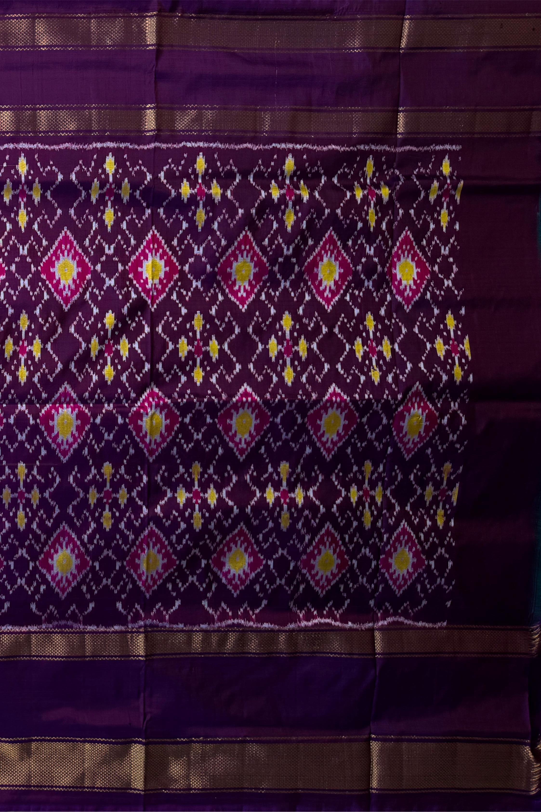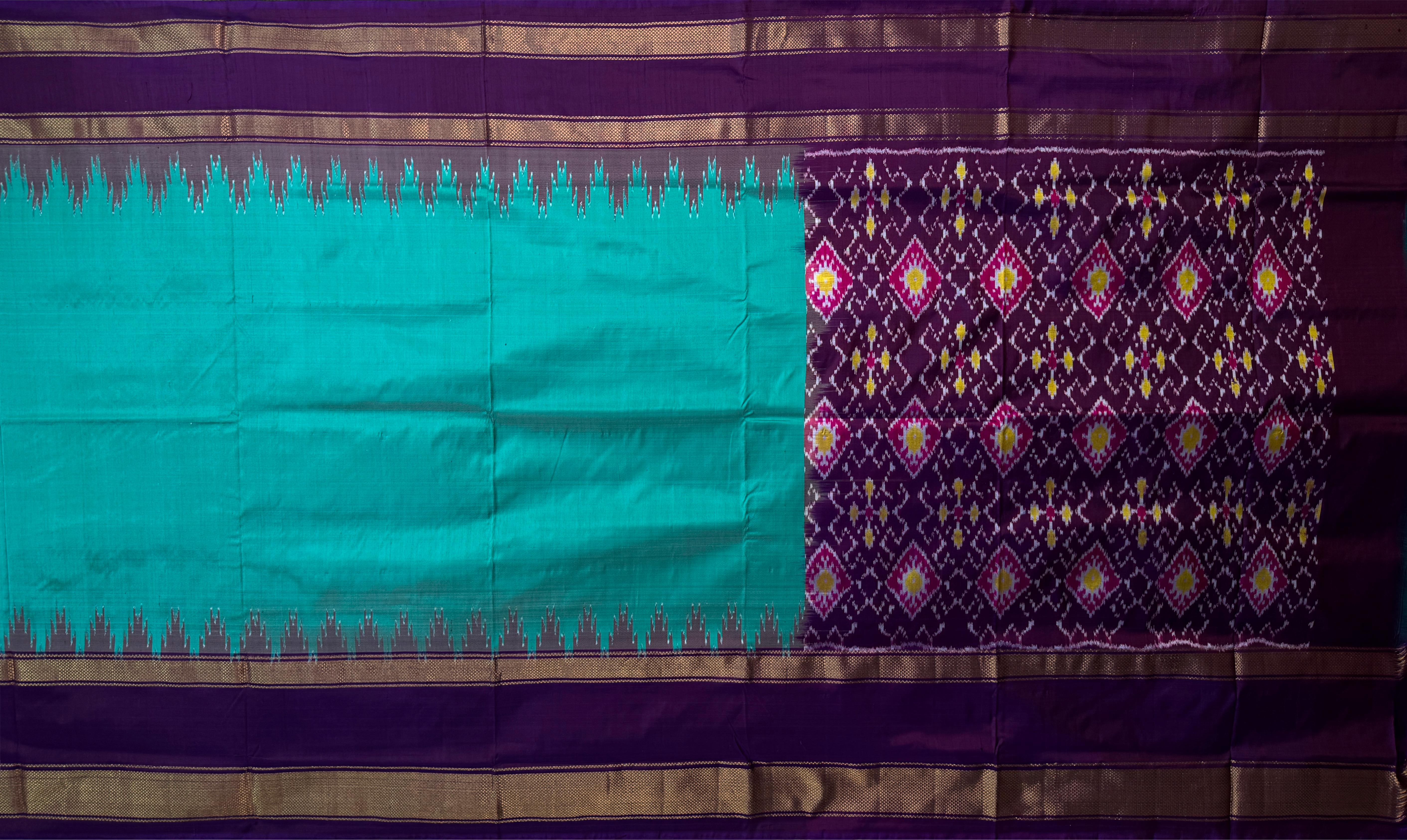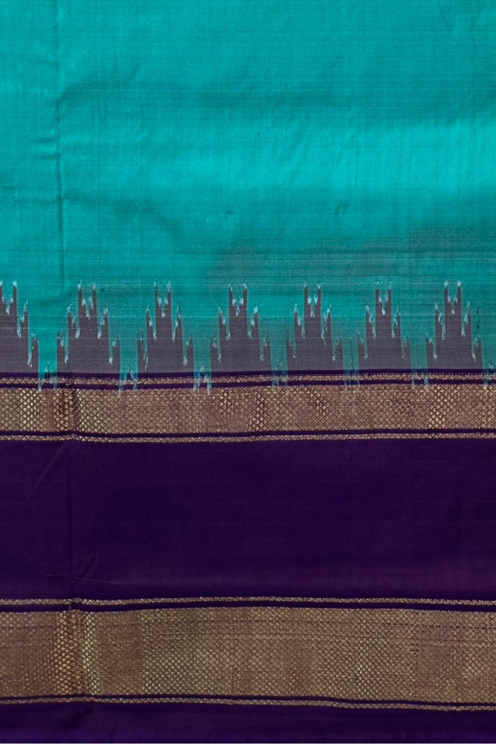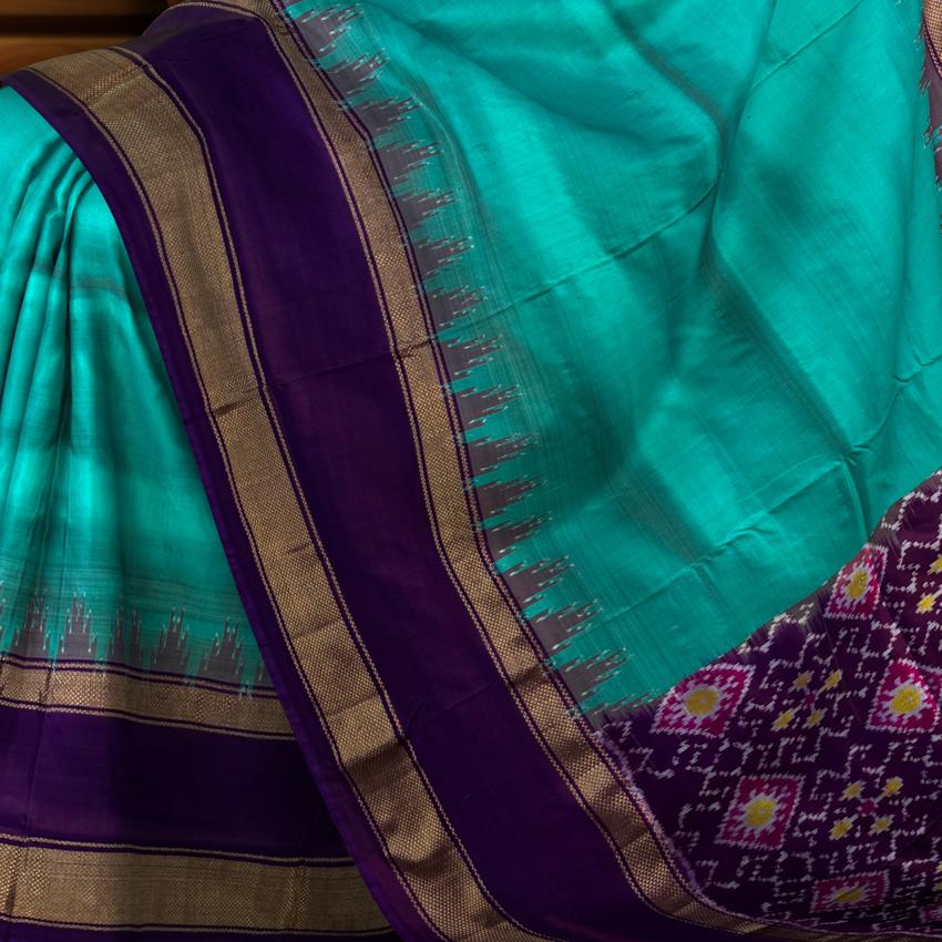 This stunning Rama Blue Pochampally Ikat Saree is a true reflection of grace and richness. The deep, jewel-toned blue body is elegantly complemented by a royal violet border and pallu, creating a rich interplay of colors that capture attention effortlessly. Its single-side border design enhances the drape, making it both traditional and modern in appeal. Hailing from the heritage town of Pochampally in Telangana, these sarees are crafted using the meticulous Ikat weaving technique, where both warp and weft threads are pre-dyed before weaving. This labor-intensive process results in crisp, symmetrical patterns that hold deep cultural significance — with motifs that represent harmony, fertility, and life cycles. This saree is perfect for wedding receptions, festive gatherings, and formal celebrations. Pair it with a contrast blouse in gold or silver hues and traditional jewelry like kundan or antique gold sets for an opulent look. Note: The appearance of the product’s colors may vary due to lighting conditions or your device’s screen calibration. For further assistance or additional images/videos, feel free to contact us at +91 97897 60367 / +1 (945) 308-5962 or email at wecare@thesudeshiweaving.com.