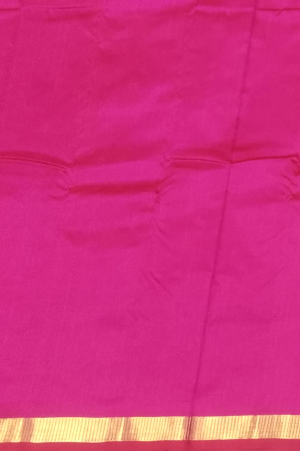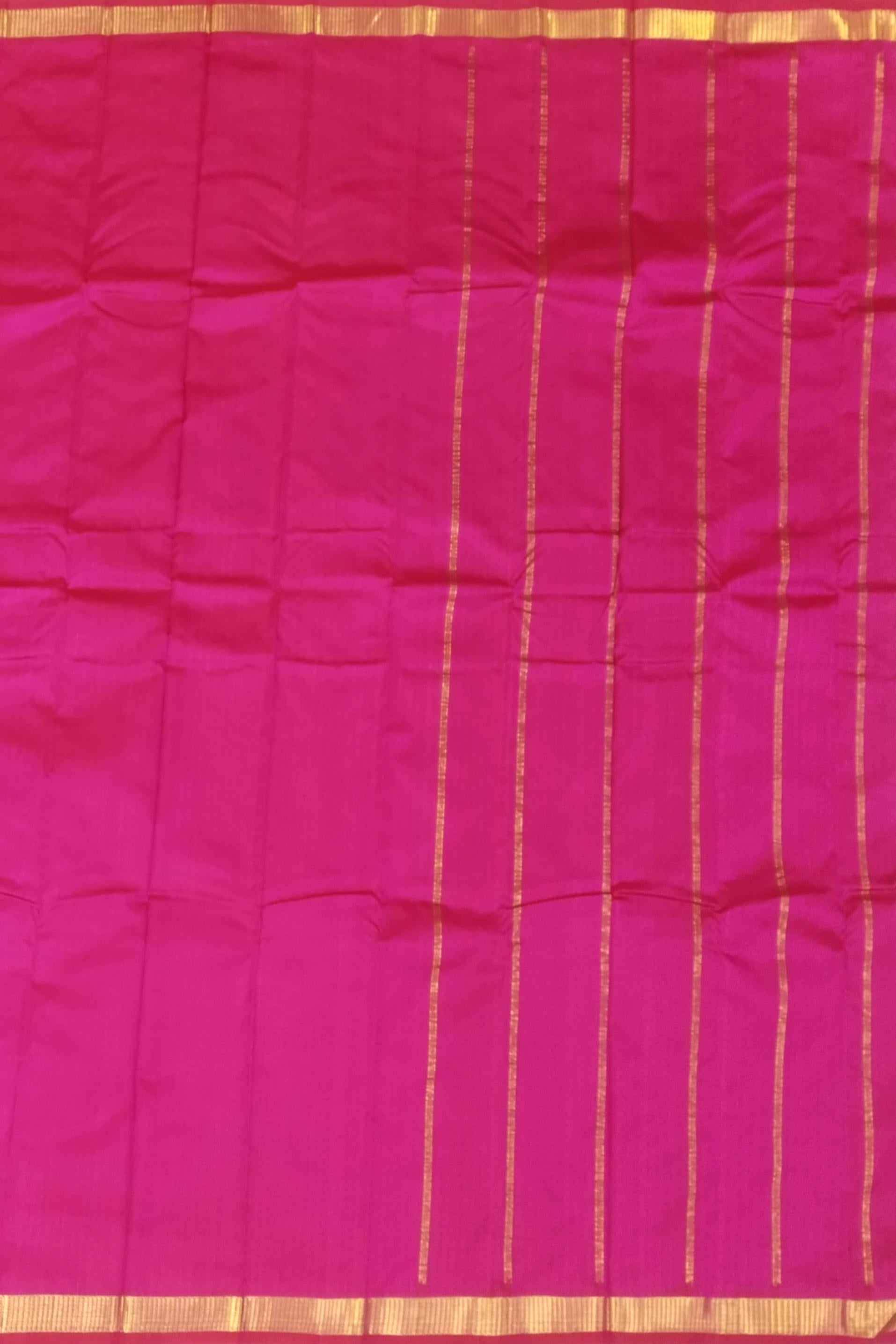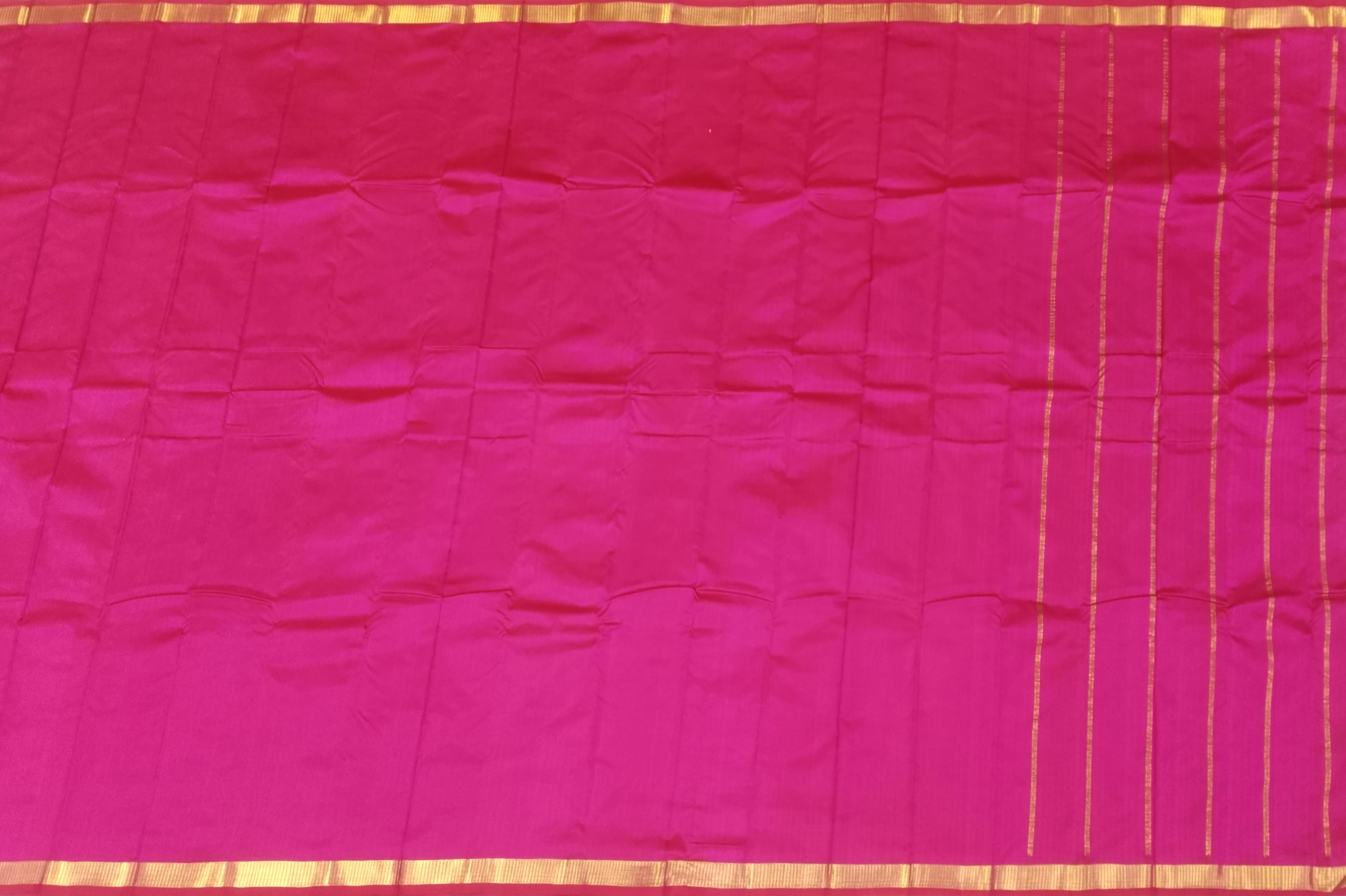 Graceful and radiant, this Rani Pink Kanchipuram Silk Saree captures the brilliance of pure silk with its rich hue and smooth finish. The saree features a self-colored border, offering a subtle play of texture and sheen that enhances its overall charm. Its minimal yet luxurious appeal makes it a versatile choice for festive and celebratory occasions. Each Kanchipuram pure silk saree is handwoven from fine mulberry silk threads by skilled artisans of Tamil Nadu. Renowned for their lustrous texture, durability, and intricate craftsmanship, these sarees are a true embodiment of India’s textile artistry and cultural legacy. This saree pairs beautifully with a matching pink blouse. Accessorize with antique gold or diamond jewellery and a soft clutch for a look that’s effortlessly traditional yet timelessly elegant. Note: The appearance of the product’s colors may vary due to lighting conditions or your device’s screen calibration. For further assistance or additional images/videos, feel free to contact us at +91 97897 60367 or email at wecare@thesudeshiweaving.com.