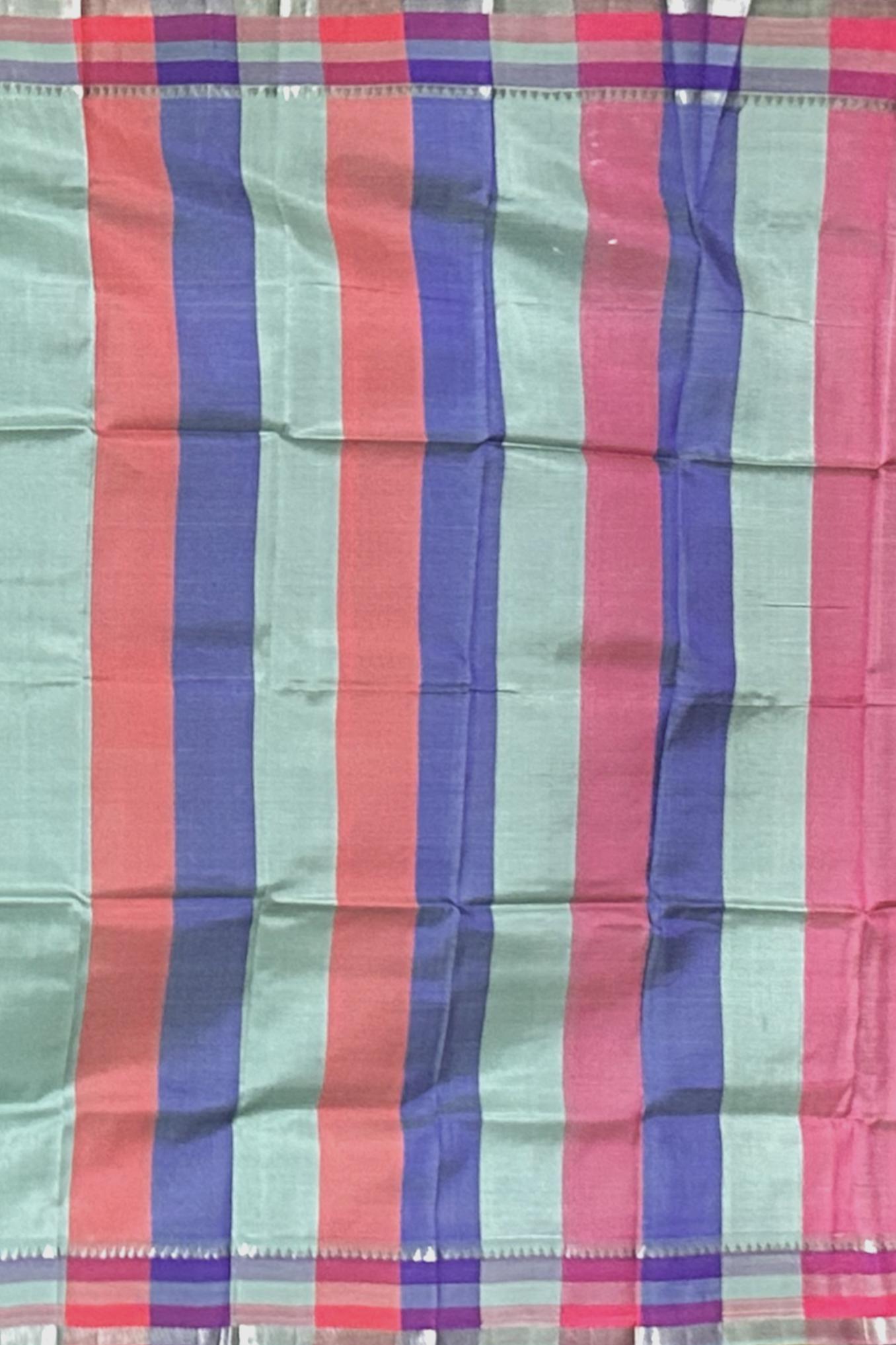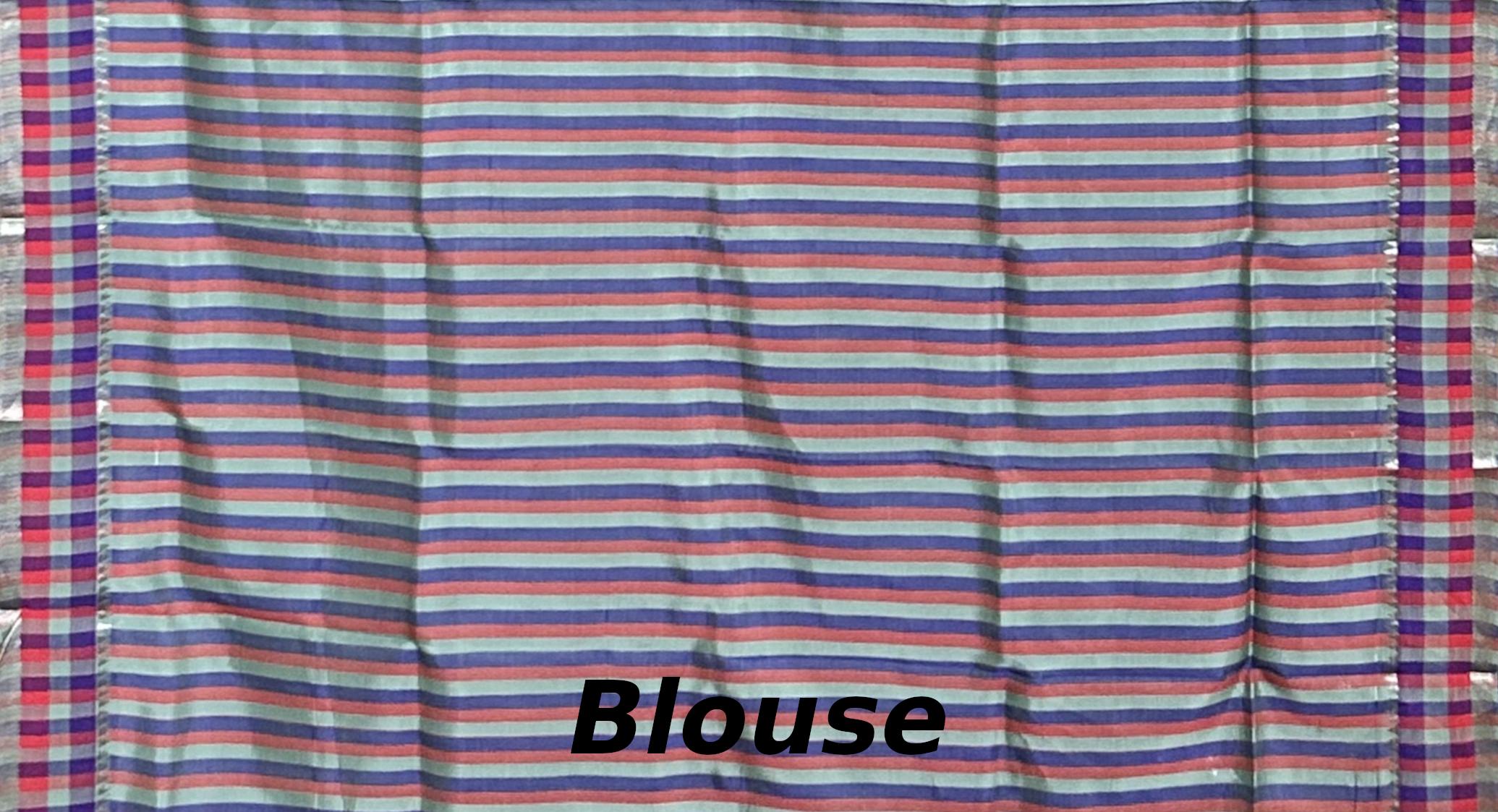 Embrace the vibrant colors of this Red Blue Green Multi Colour Mangalagiri saree, featuring intricate strips. The single-side design creates a sleek, modern look, while the multi-color hue adds a touch of playfulness.