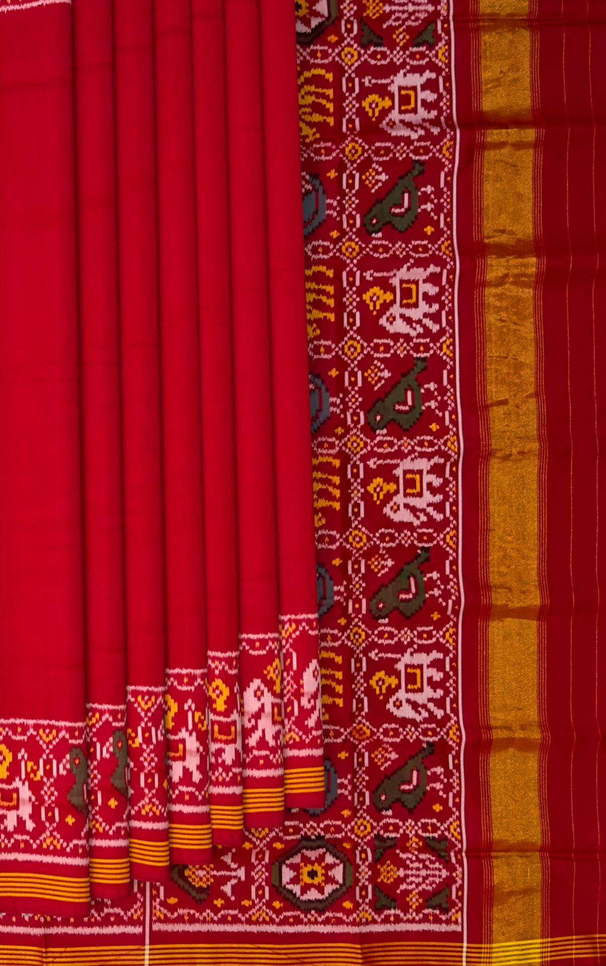 Adorn the Red Maroon Galo Semi Patan Saree, a perfect blend of tradition and luxury for grand occasions. Its deep maroon tones enriched with 6 Figure patterns make a sophisticated statement.