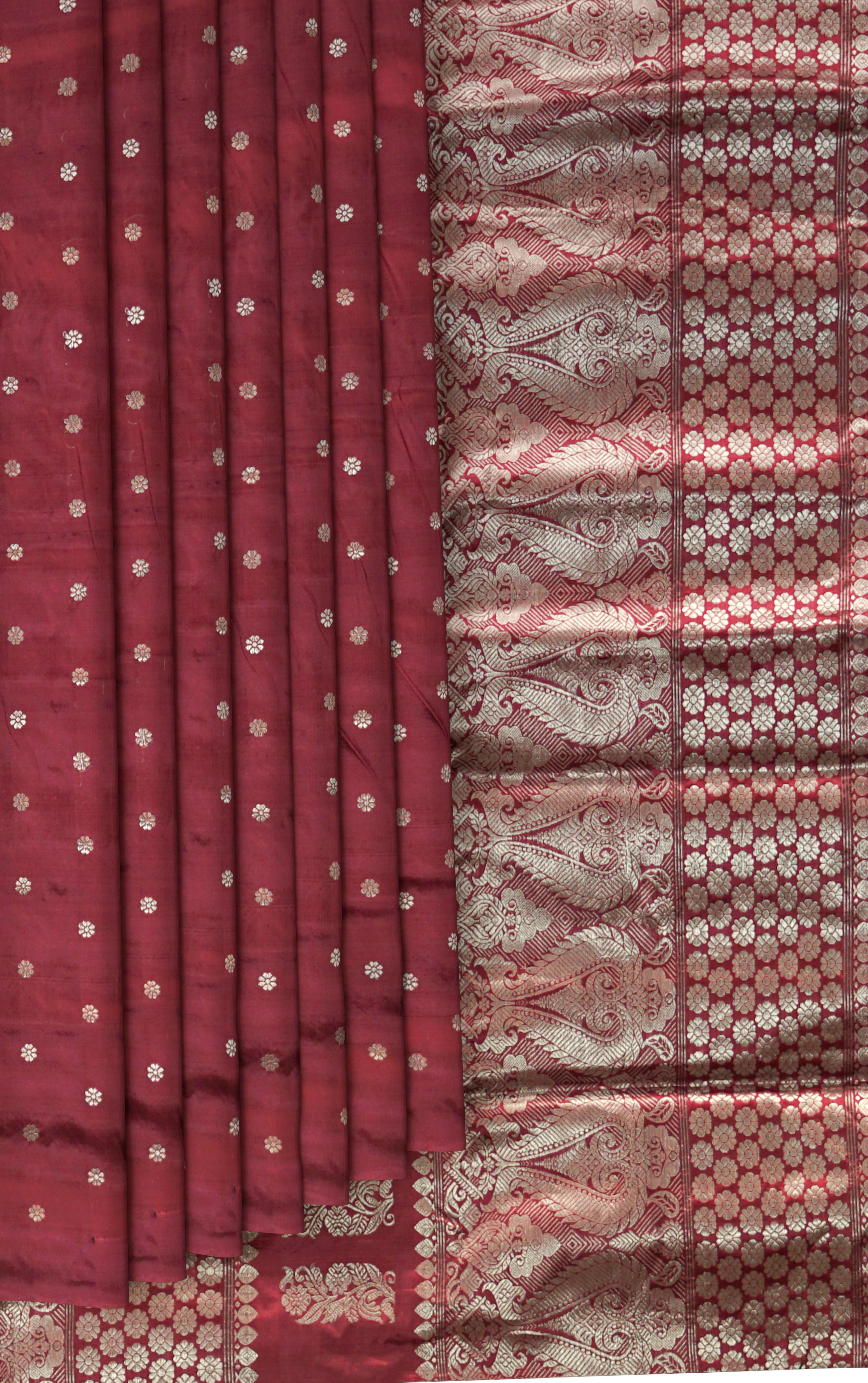 Ideal for weddings, cultural events, and formal gatherings, this saree is a statement of elegance and tradition. Pair it with traditional jewelry to complete the look, and let the saree's vibrant colors and intricate designs reflect your refined taste and appreciation for Assamese craftsmanship. This saree is not just a piece of clothing but a work of art, celebrating the skill and artistry of Assam's weavers.