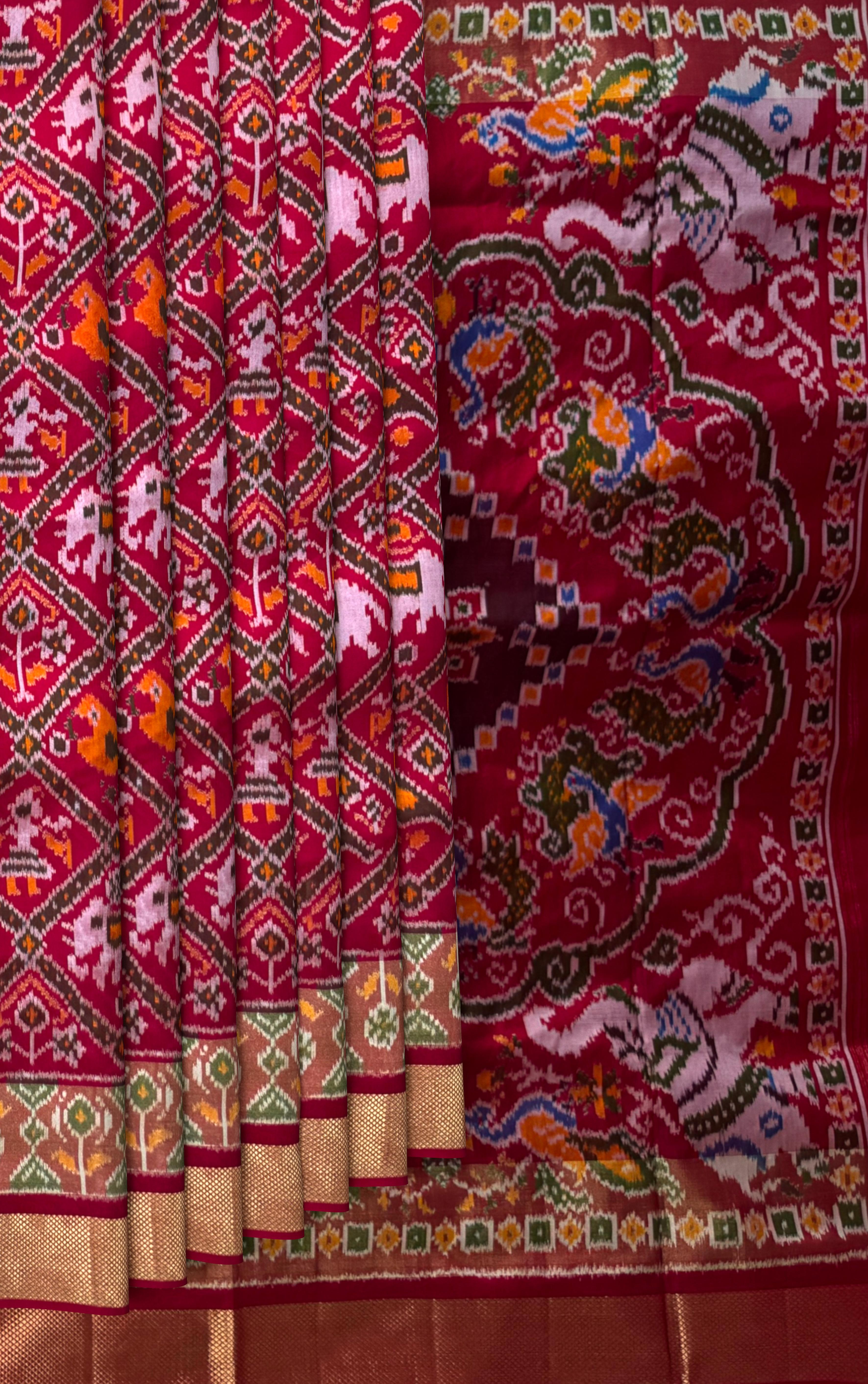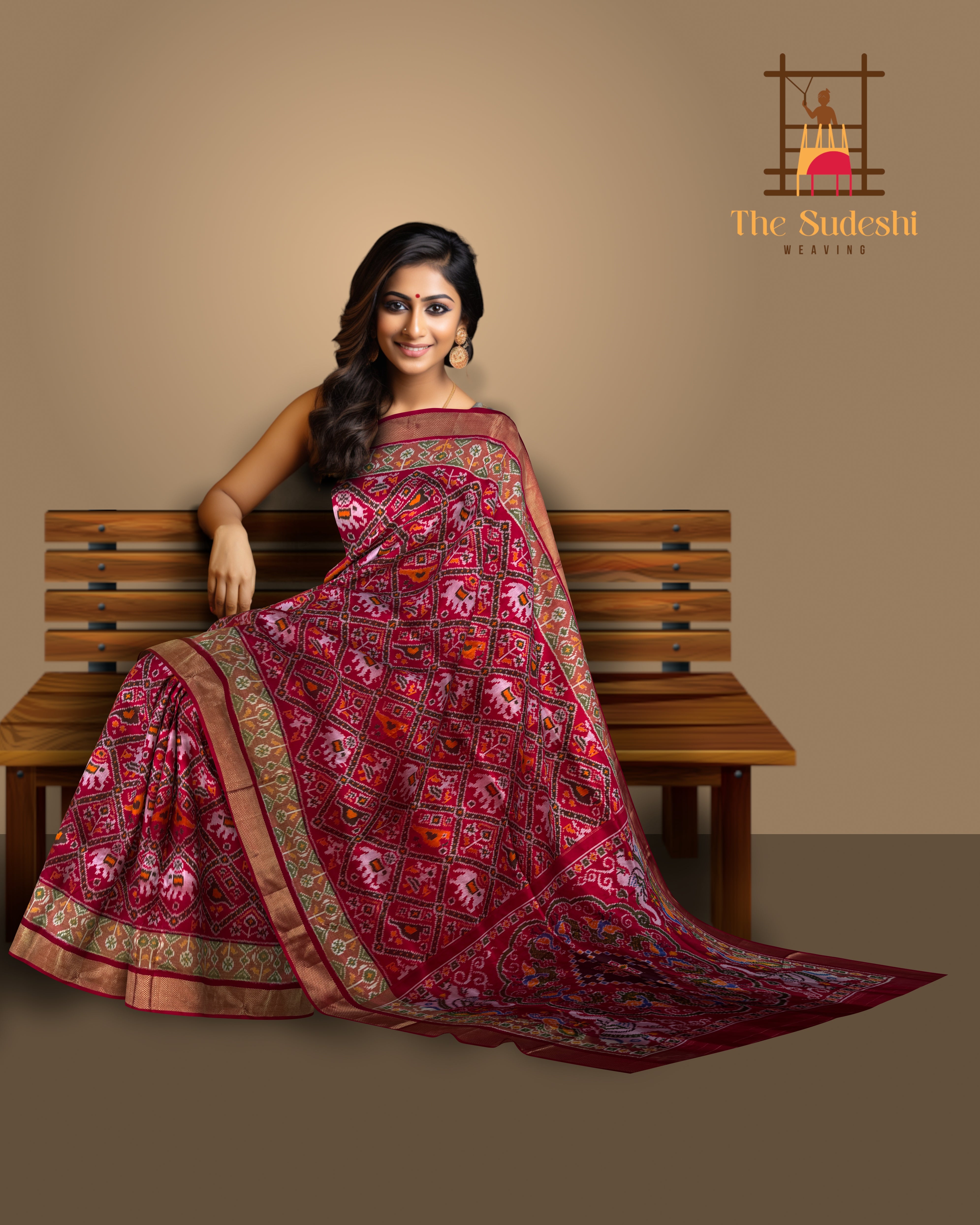 Command attention with the bold and timeless Red Pochampally Ikat Saree. Featuring a rich red body, matching red border, and pallu, this saree embodies power, festivity, and tradition. The deep red hue, coupled with intricate ikat patterns, creates a saree that is both classic and statement-worthy. Originating from Pochampally, Telangana, these Ikat sarees are known for the double ikat technique where threads are pre-dyed before weaving. This results in symmetrical and geometric patterns that symbolize strength, continuity, and prosperity — all reflected in the symbolism of the color red in Indian culture. This saree is perfect for weddings, traditional ceremonies, and grand festive occasions. Pair it with a gold or maroon blouse, and adorn yourself with temple jewelry, gold bangles, and a bold red bindi to complete the traditional ensemble. Note: The appearance of the product’s colors may vary due to lighting conditions or your device’s screen calibration. For further assistance or additional images/videos, feel free to contact us at +91 97897 60367 / +1 (945) 308-5962 or email at wecare@thesudeshiweaving.com.