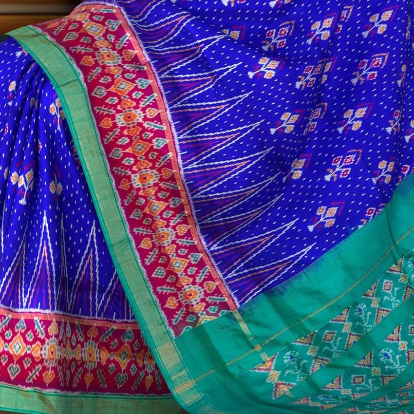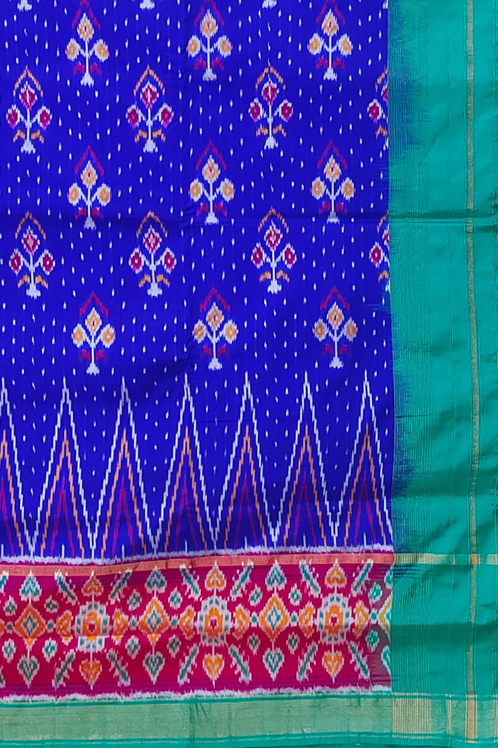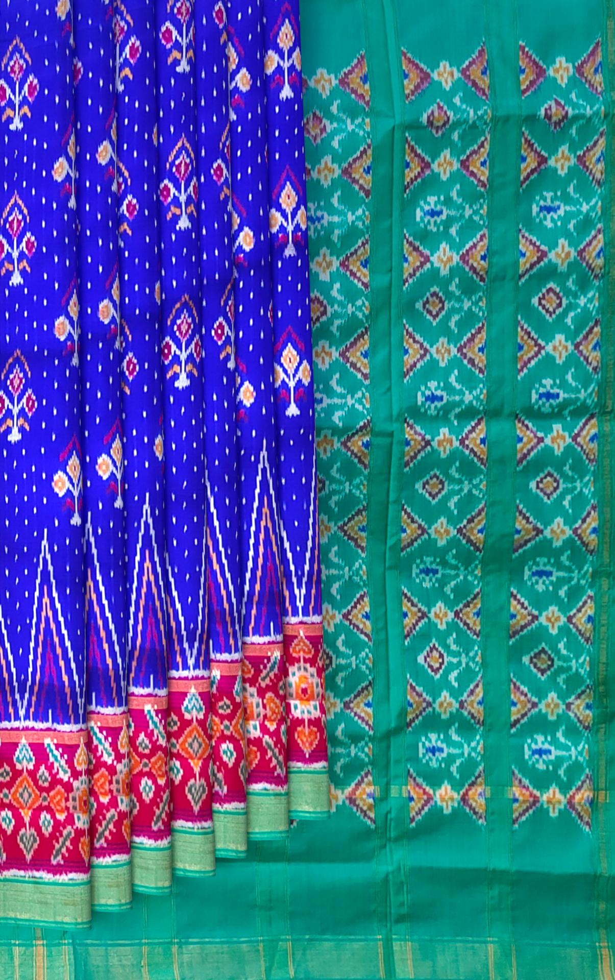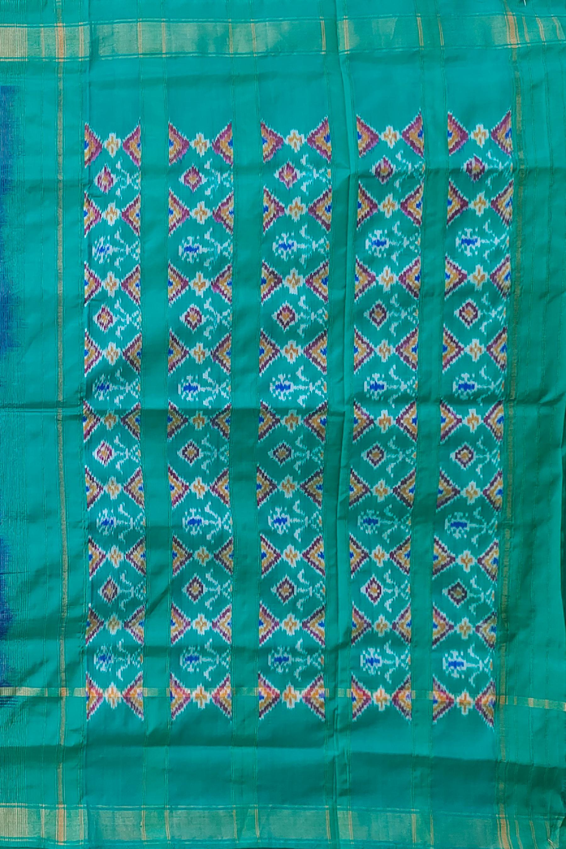 Discover the divine elegance of our Royal Blue and Sea Green Temple Patola Pochampally Saree. The regal royal blue body beautifully contrasts with the serene sea green pallu and blouse, creating a visually captivating look. Ideal for casual gatherings, festivals, and social events, this saree blends tradition with contemporary charm. The intricate temple patola design adds a touch of sacred artistry, making it perfect for temple visits and spiritual ceremonies.