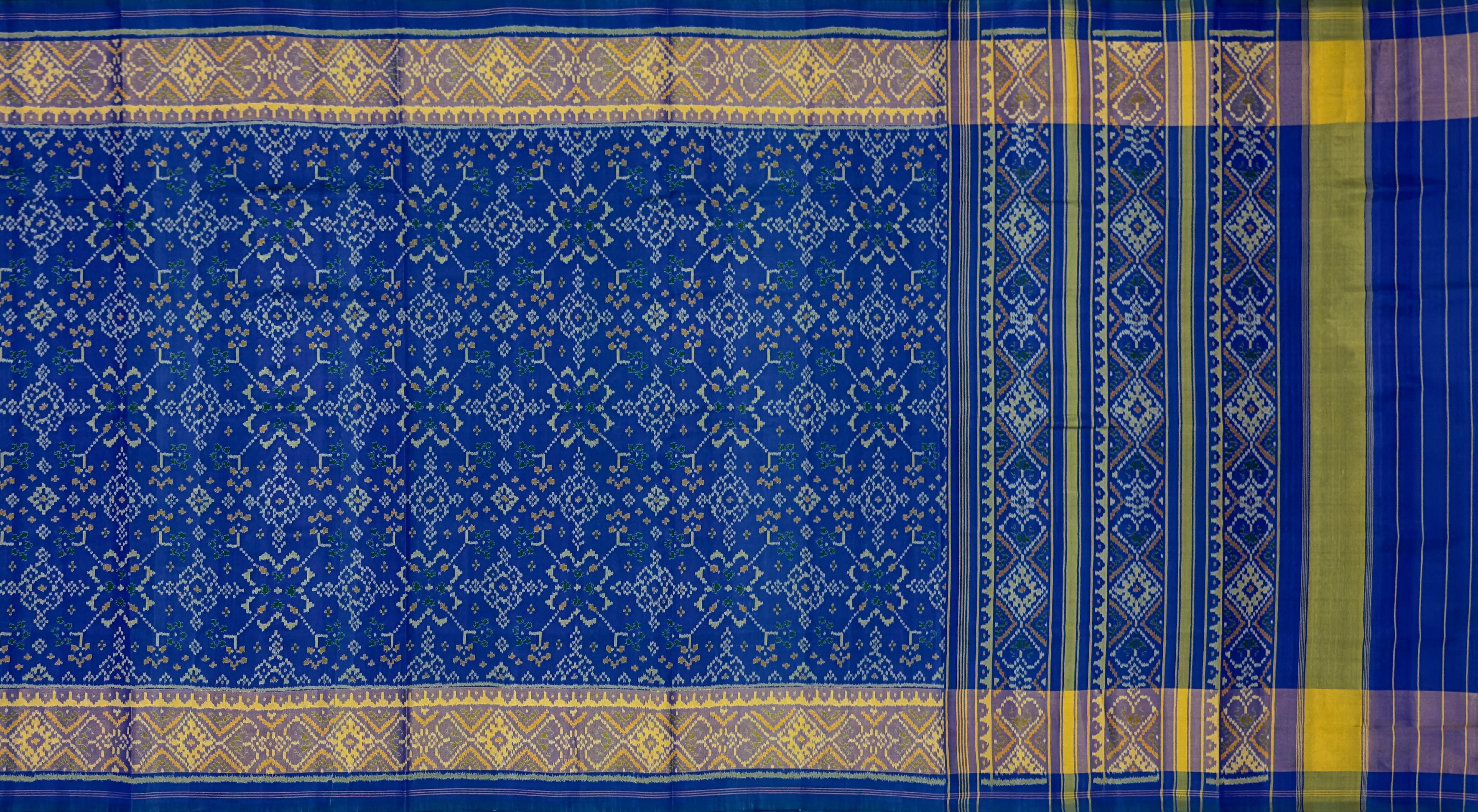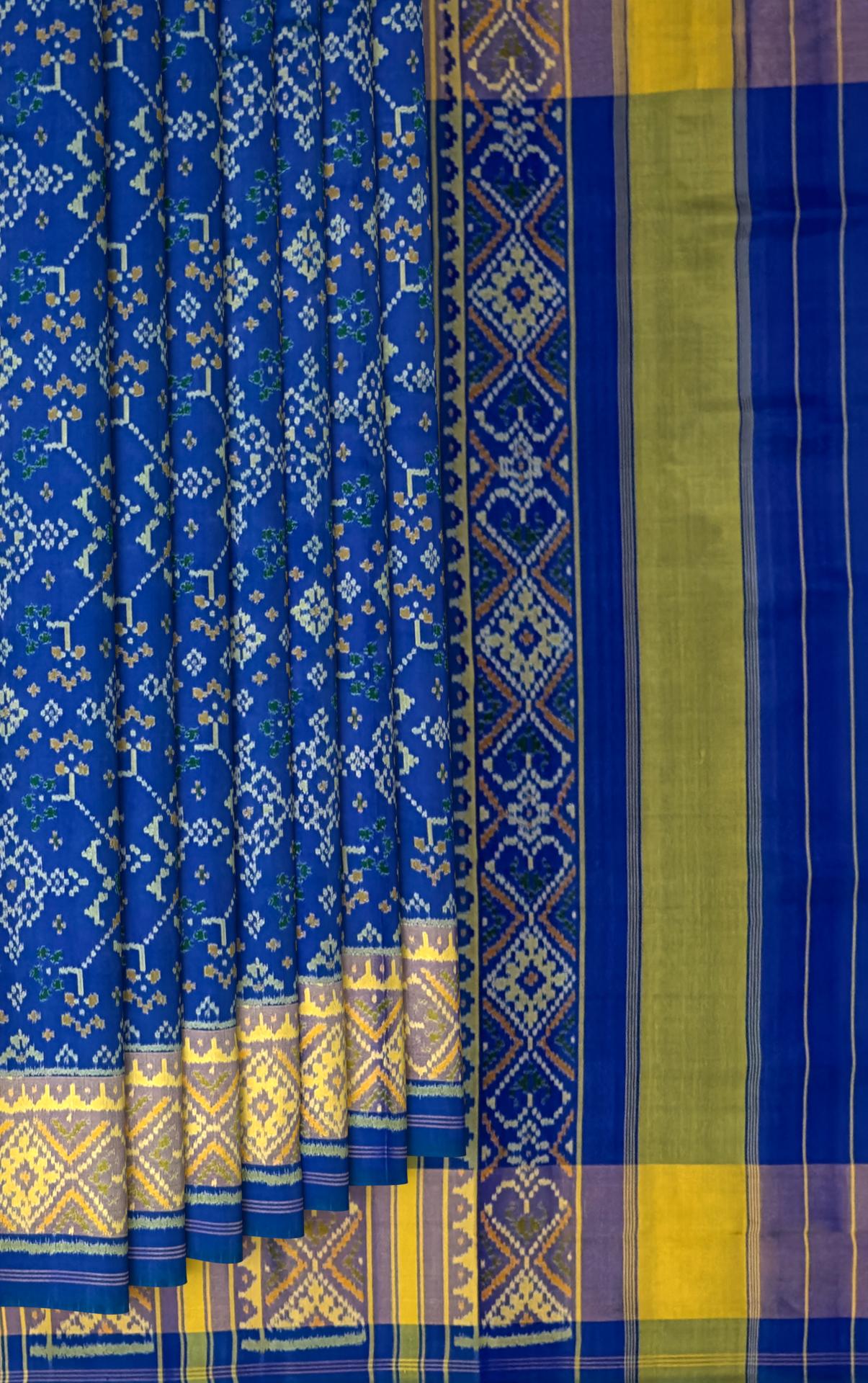 Experience the allure of the Royal Blue Navratna Patola Saree, a stunning embodiment of traditional Indian craftsmanship. Crafted using the single ikat technique, this saree reflects a week of dedicated artisan labor, where each thread is individually dyed and woven to create the distinctive Navratna design. The royal blue shade enhances the luxurious patterns, making it a striking choice for festive occasions and sophisticated events. The saree's semi-lustrous finish adds a touch of modern elegance, perfect for the style-conscious NRI woman. This saree is not just a garment but a story of rich cultural heritage and exclusivity. Ideal for weddings, cultural celebrations, and social gatherings, it serves as a luxurious symbol of tradition and pride. Celebrate your heritage with the Royal Blue Navratna Patola Saree, a timeless piece that connects you to your roots with grace and elegance.