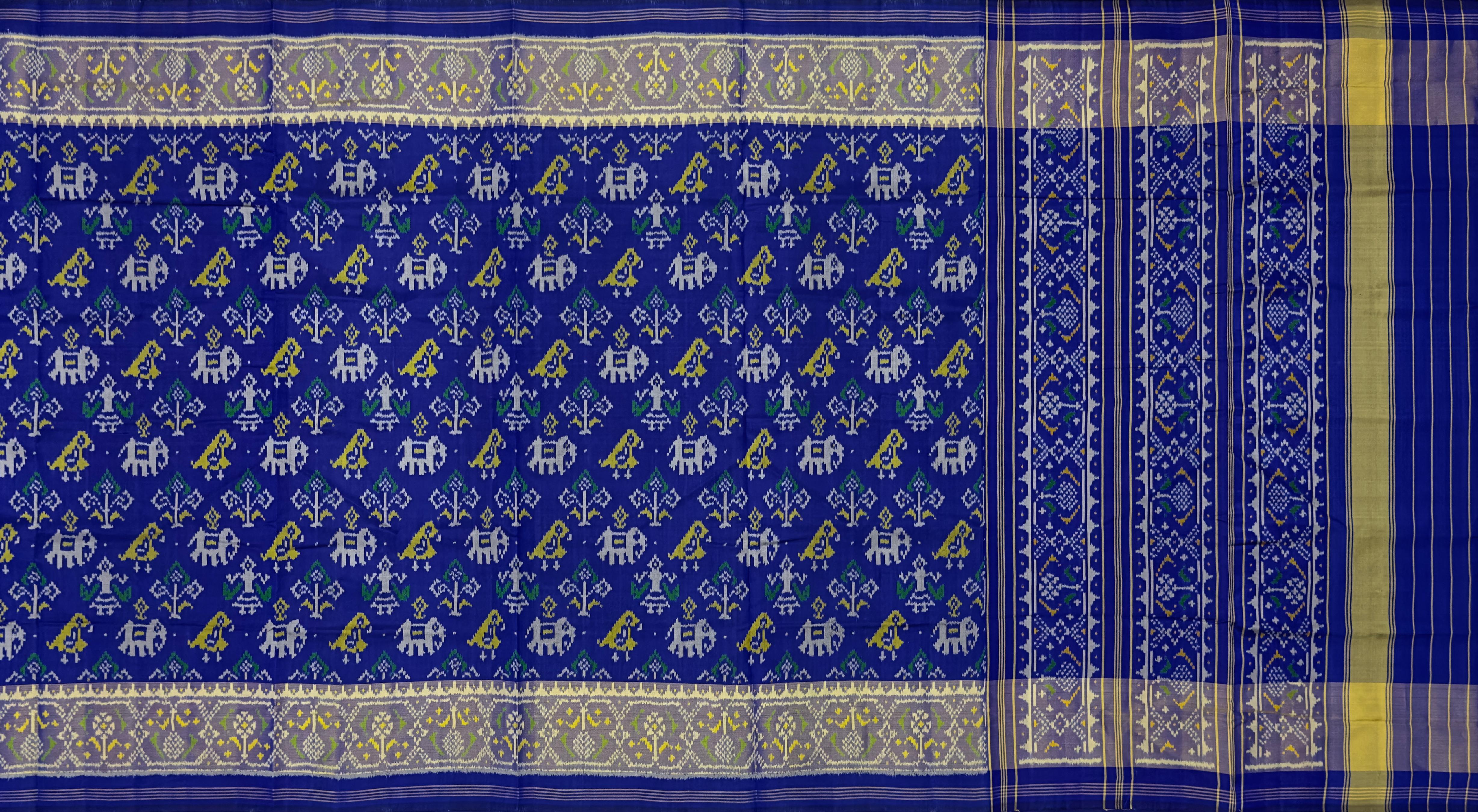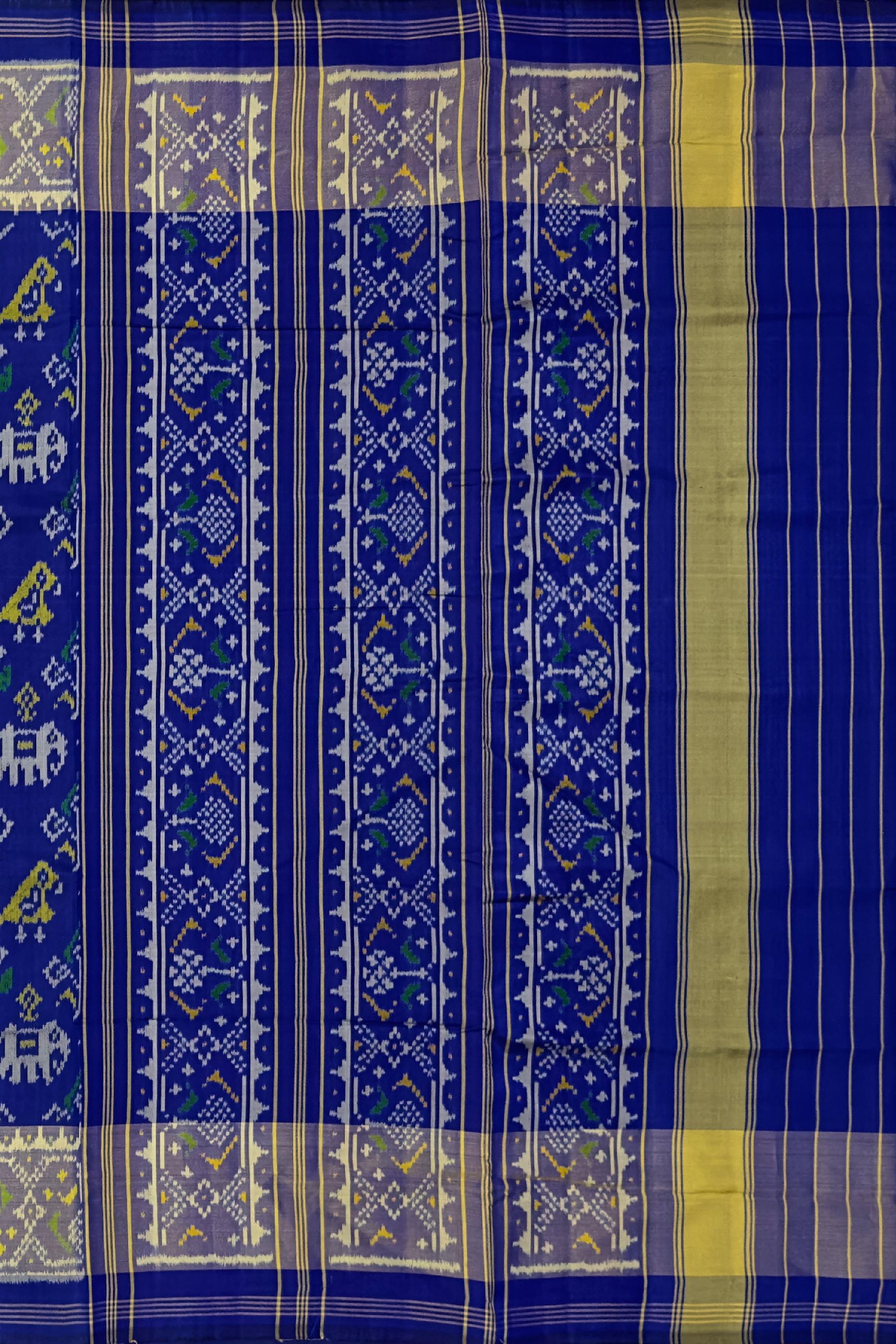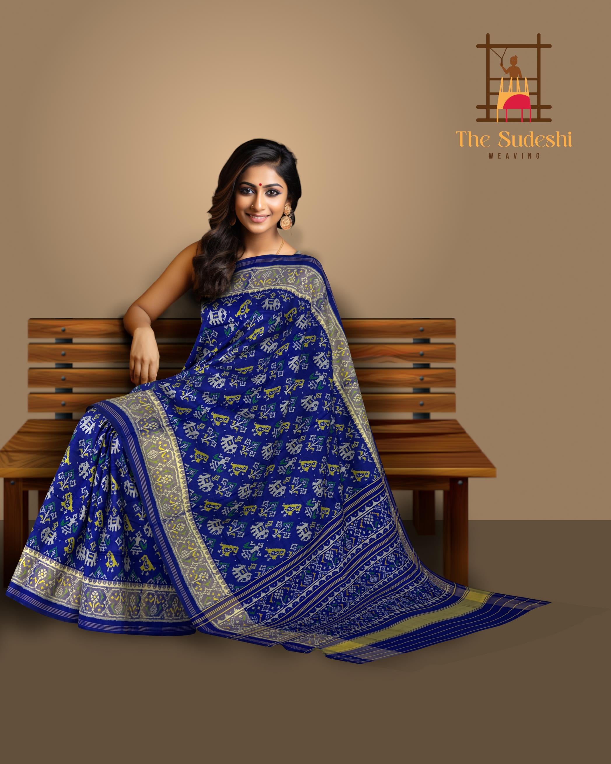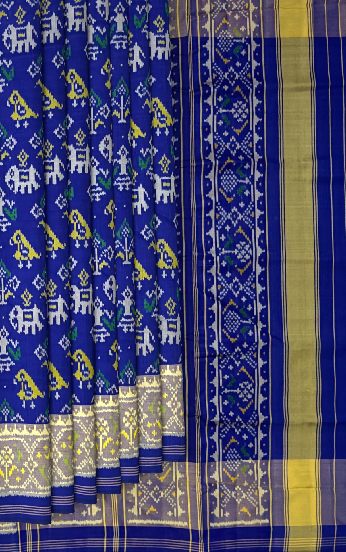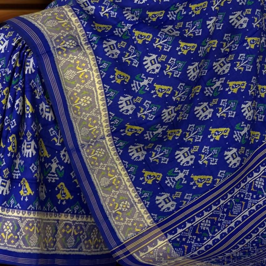Unveil the charm of the Royal Blue Spaced Hathi Popat Patola Saree, a masterpiece of traditional Indian artistry. Crafted using the single ikat technique, this saree features the intricate Spaced Hathi Popat design, showcasing luxurious patterns. The deep royal blue color provides a captivating backdrop for the detailed motifs that flow seamlessly from the body to the pallu. The semi-lustrous finish adds a touch of modern sophistication, making it a versatile choice for various occasions. Perfect for grand weddings, cultural celebrations, and social gatherings, this saree is designed for the modern NRI woman who values her Indian heritage. It symbolizes centuries of artisan tradition, making each piece a unique work of art. Celebrate your heritage with the Royal Blue Spaced Hathi Popat Patola Saree, a timeless piece that exudes tradition and elegance.