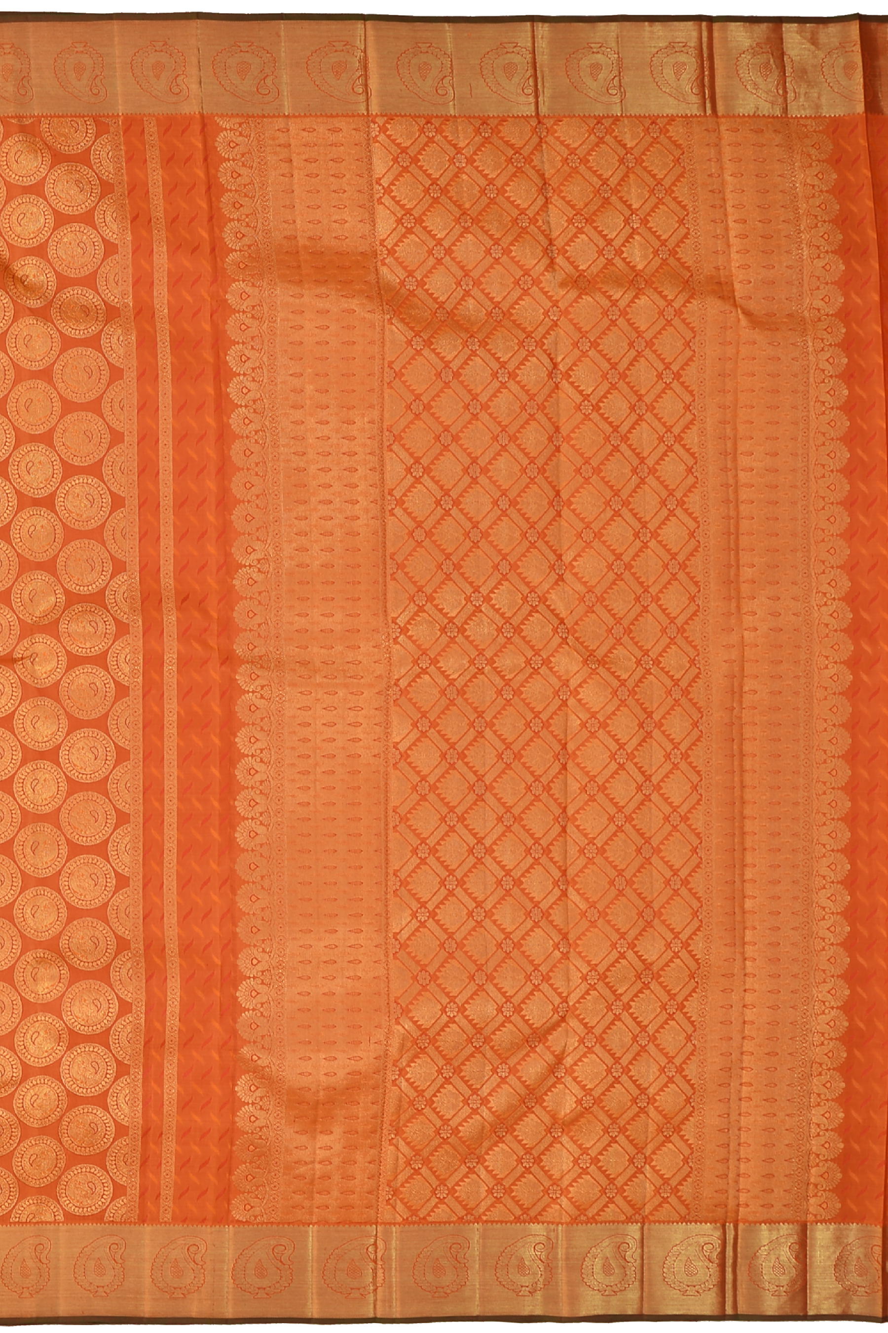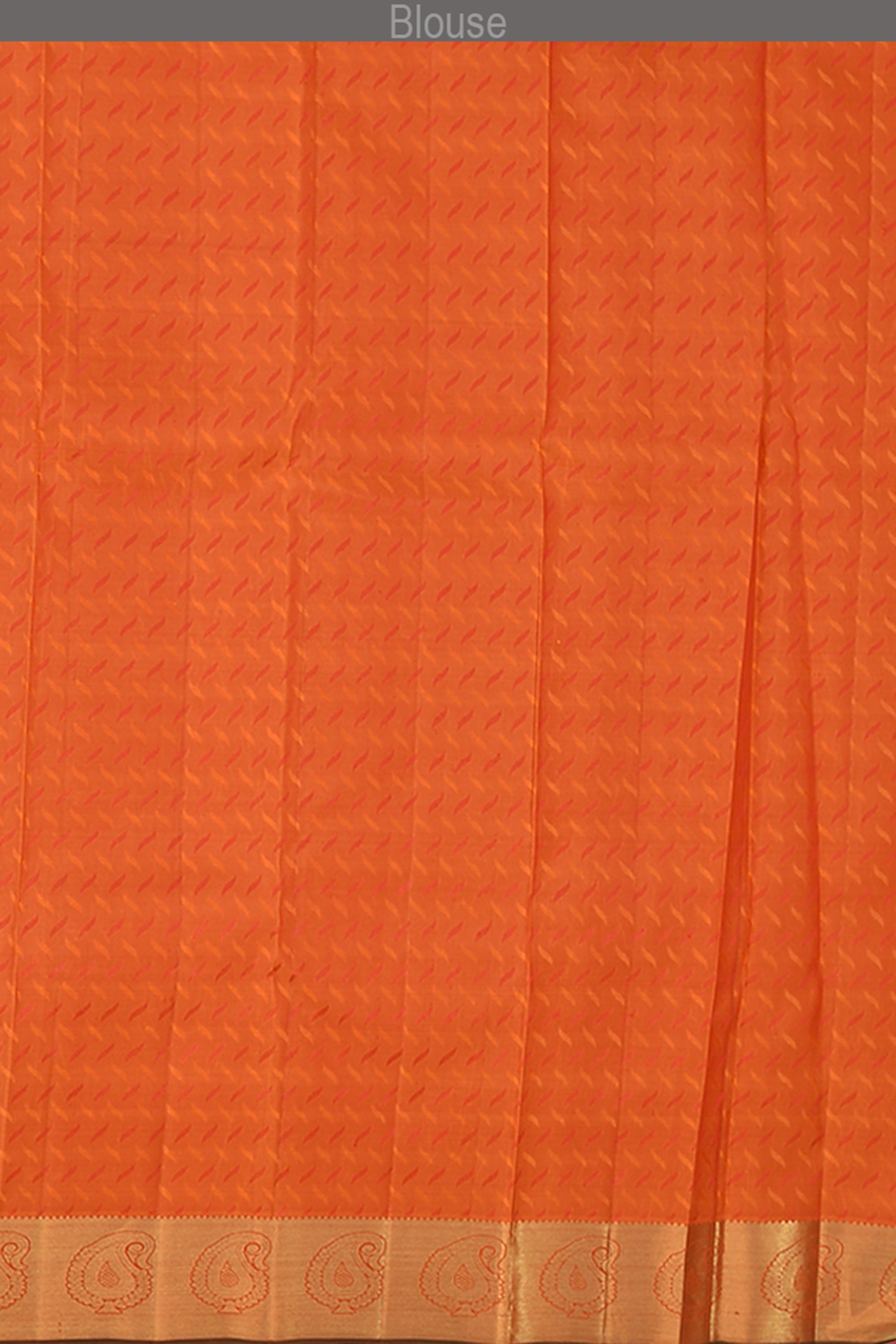 Embrace the warmth of tradition with this vibrant Saffron Orange saree. Every weave is a tribute to the Jacquard Round Annam, symbolizing purity, prosperity, and tradition.