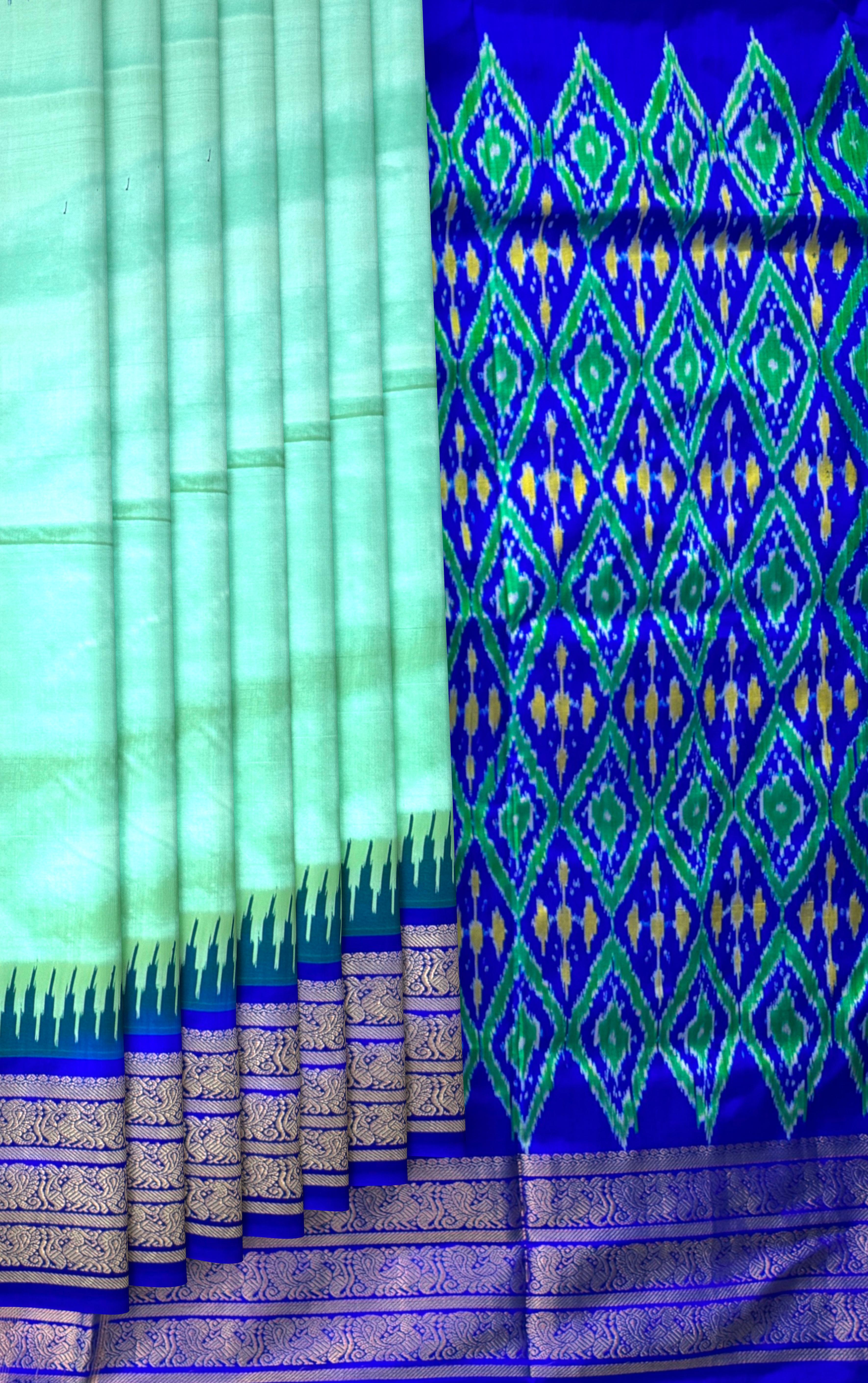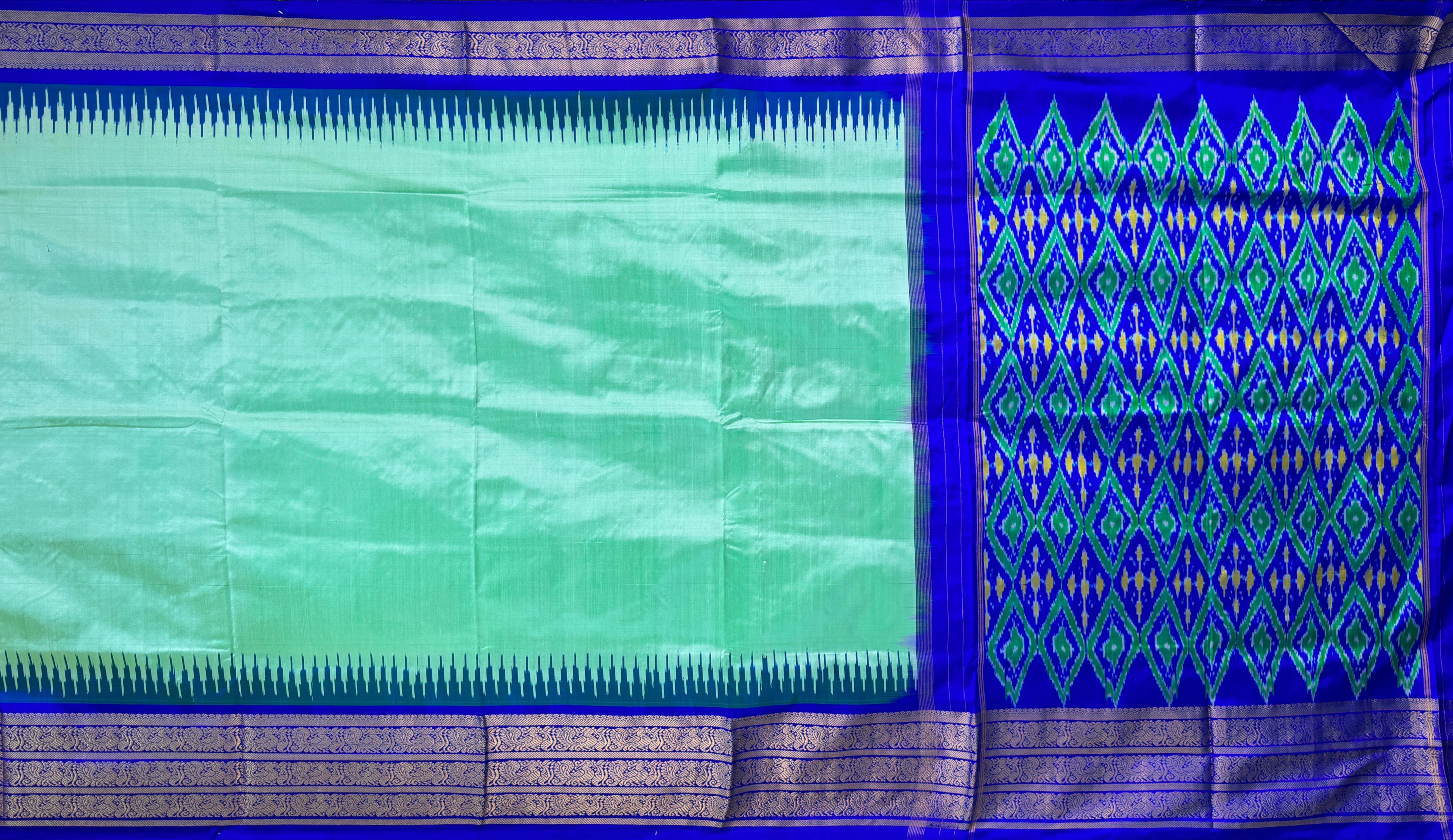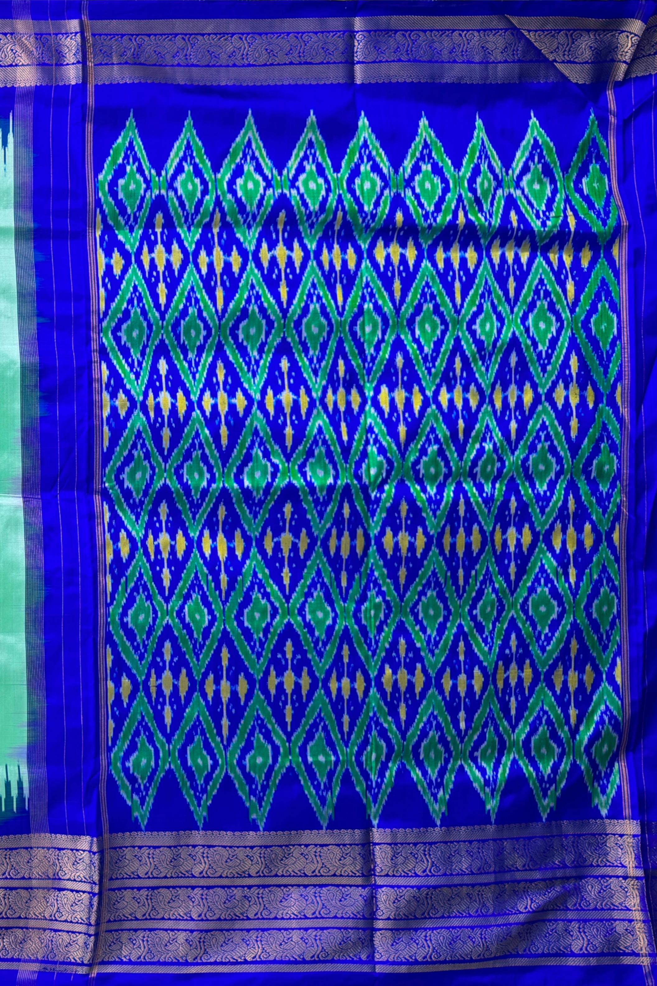 Fresh and tranquil, this Sky Blue Pochampally Ikat Saree radiates soft sophistication. The serene sky blue body is beautifully bordered and complemented by a deeper blue border and pallu, creating a harmonious and calming palette. Its delicate patterns make it a delightful choice for women who cherish subtlety with elegance. Rooted in Telangana, Pochampally Ikat sarees are revered for their unique pre-dyed yarn weaving technique. The artistry results in crisp geometric patterns that symbolize natural elements and philosophical beliefs, often reflecting harmony, cycles of life, and cultural prosperity. The craftsmanship behind every saree is a testament to India’s rich handloom legacy. This saree is perfect for morning functions, family get-togethers, or office festivities. Style it with a matching blue blouse or a silver-hued blouse and accessorize with oxidized jewelry or sleek silver sets for a polished, chic look. Note: The appearance of the product’s colors may vary due to lighting conditions or your device’s screen calibration. For further assistance or additional images/videos, feel free to contact us at +91 97897 60367 / +1 (945) 308-5962 or email at wecare@thesudeshiweaving.com.