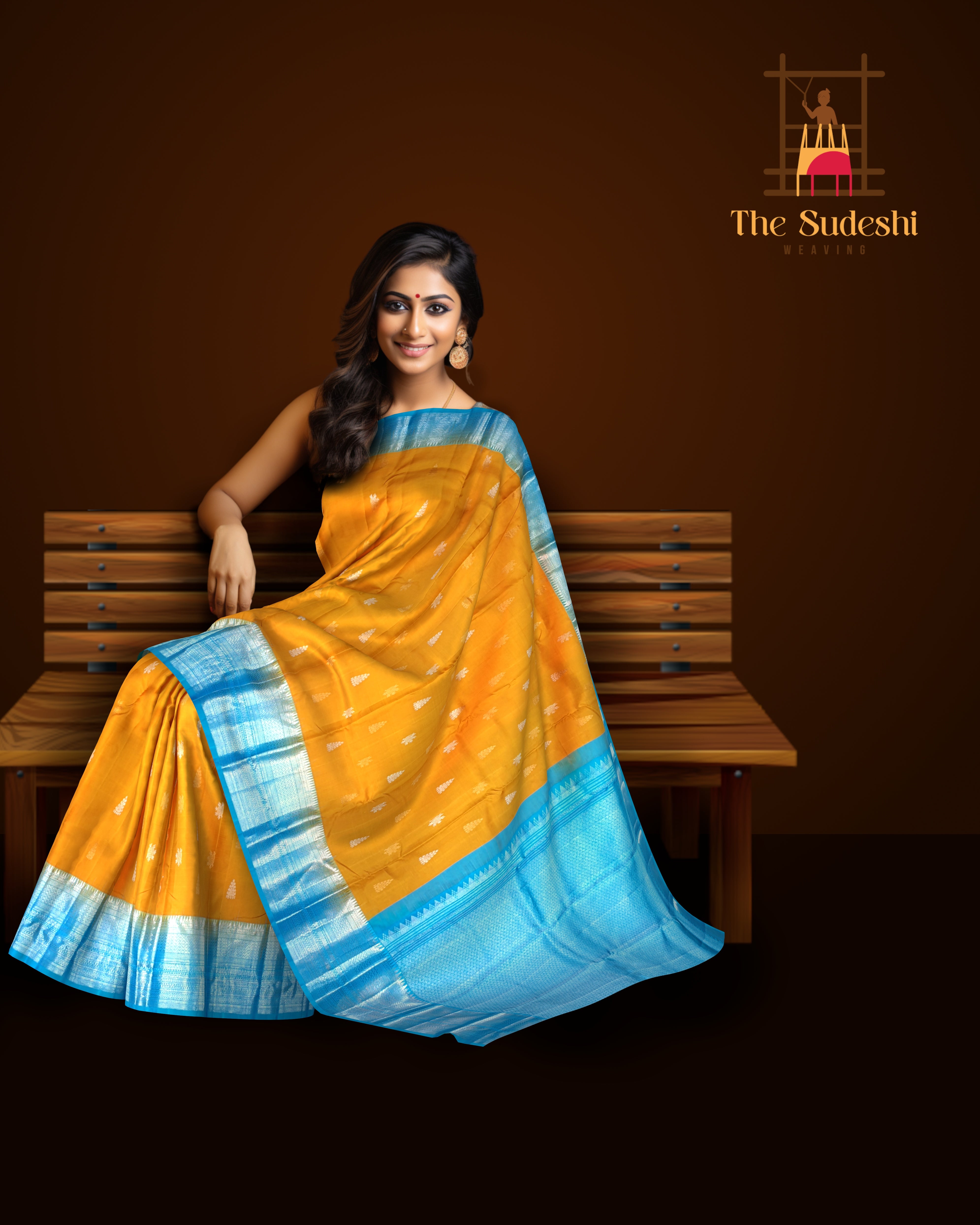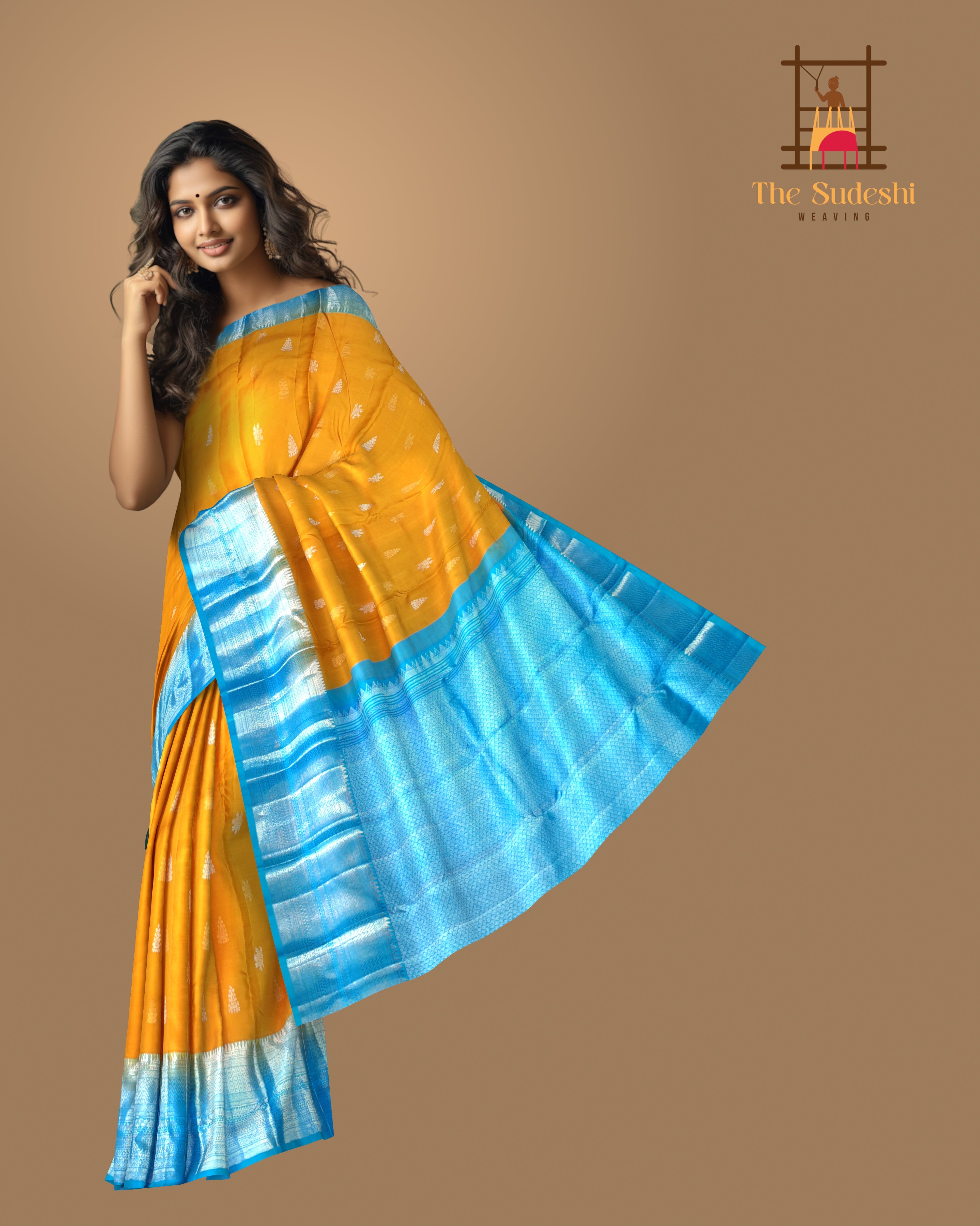 All our sarees are handwoven and made from pure silk, unless stated otherwise. However, since our weavers are traditional artisans, they may not always have official Handloom or Silk Mark certifications for their work.