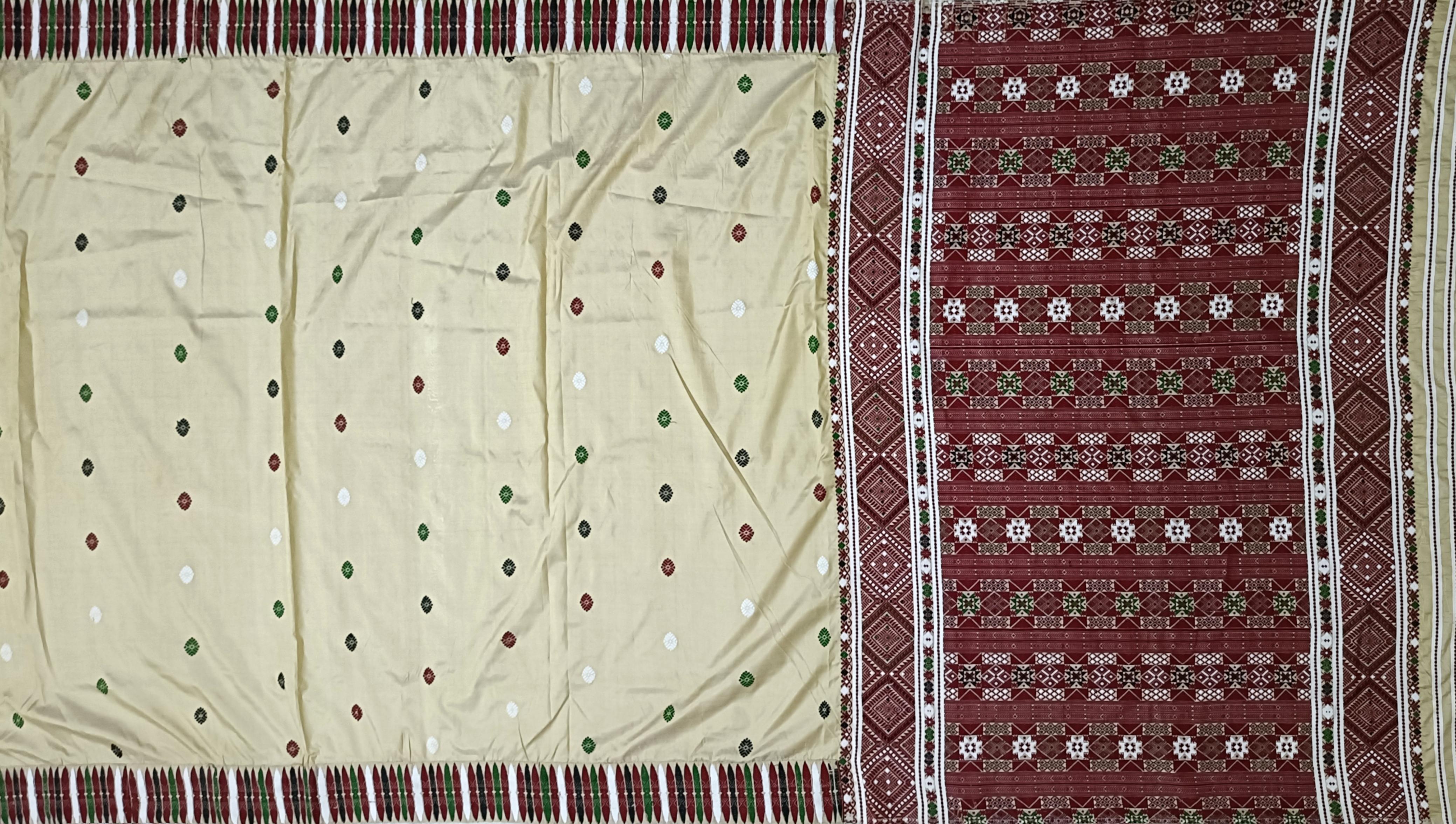 Mulberry silk, a hallmark of Assamese craftsmanship, is cherished for its natural sheen, lightweight feel, and cultural symbolism. The motifs woven into these sarees often represent prosperity and harmony, reflecting the rich heritage of the region. Each saree is meticulously crafted, ensuring both quality and authenticity.